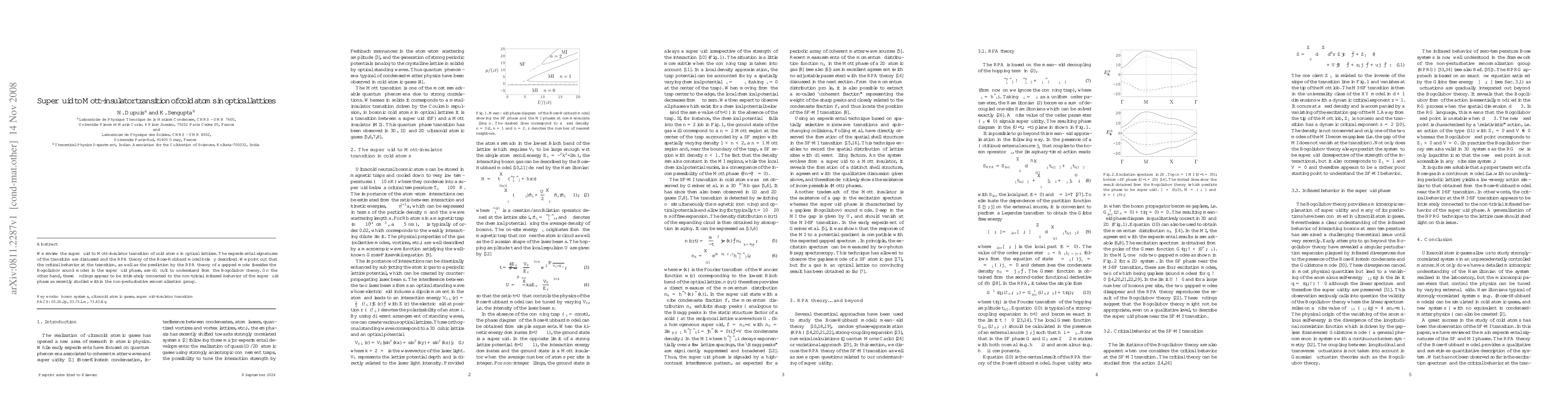 This paper reviews the superfluid to Mott-insulator transition in cold atoms within optical lattices, discussing experimental signatures and the RPA theory of the Bose-Hubbard model. It highlights discrepancies between RPA predictions and Bogoliubov theory, linking these to the non-trivial infrared behavior of the superfluid phase.