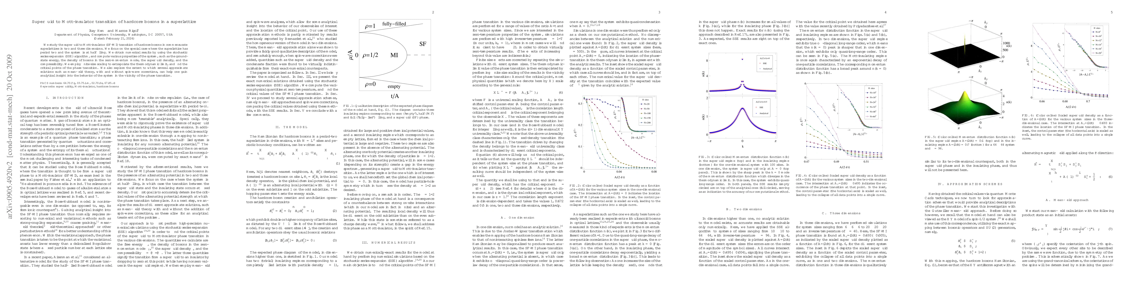 This paper investigates the superfluid to Mott-insulator transition in hardcore bosons within a two- and three-dimensional superlattice using the stochastic series expansion algorithm. The study focuses on systems at half-filling and period two, analyzing critical points and comparing exact numerical results with approximate mean-field theories.