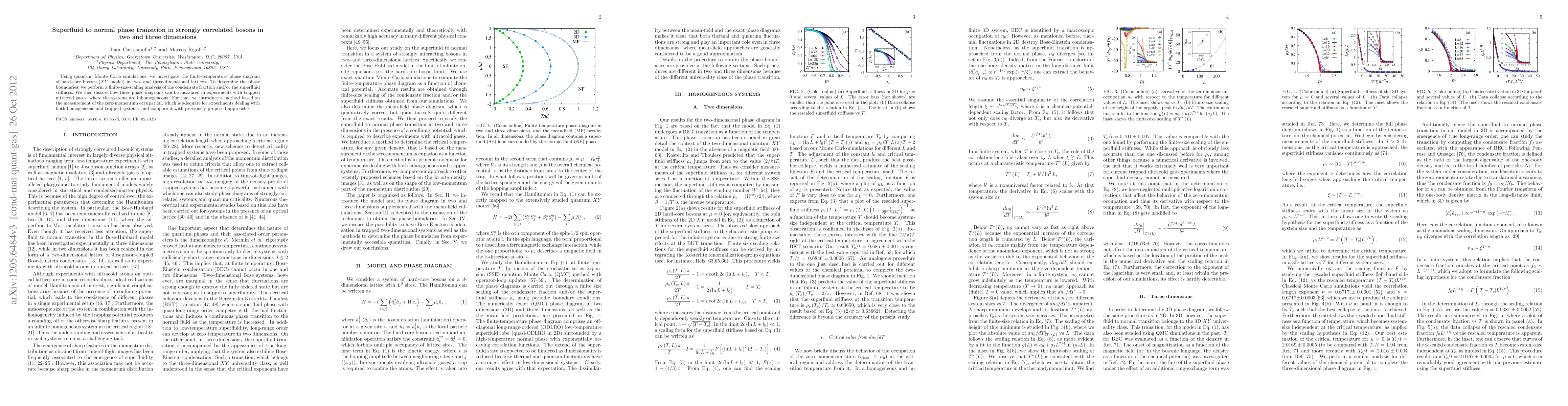 Researchers used quantum Monte Carlo simulations to study the phase transition between a superfluid and normal state in strongly correlated bosons in 2D and 3D lattices. They introduced a new method for measuring the zero-momentum occupation to analyze these systems, which can be applied to experiments with trapped ultracold gases.