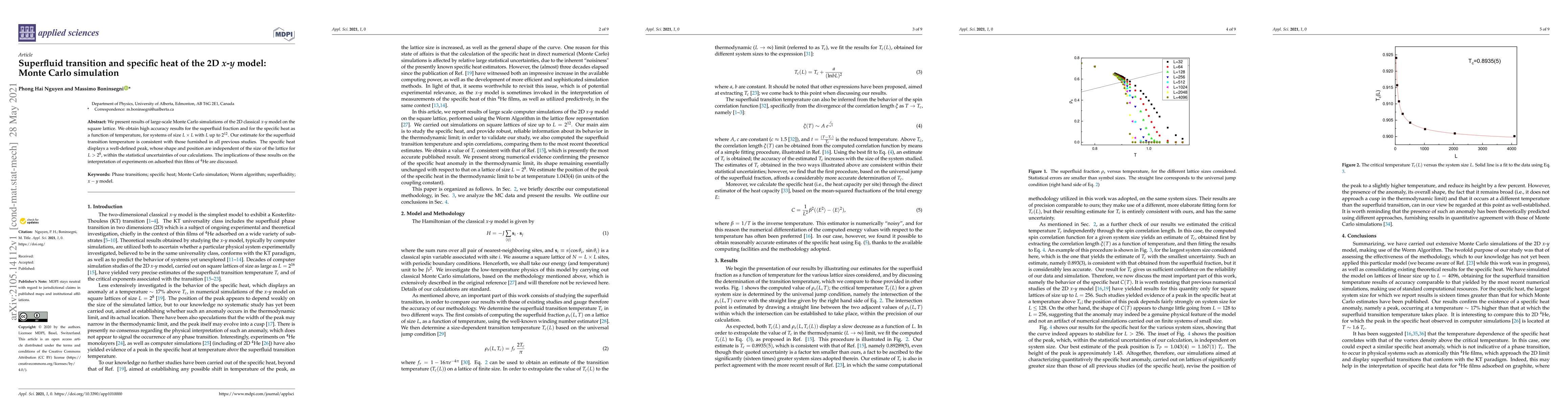This paper reports large-scale Monte Carlo simulations of the 2D classical x-y model, yielding precise data on superfluid fraction and specific heat. The study confirms the superfluid transition temperature and finds a consistent specific heat peak shape, suggesting implications for He-4 thin film experiments.