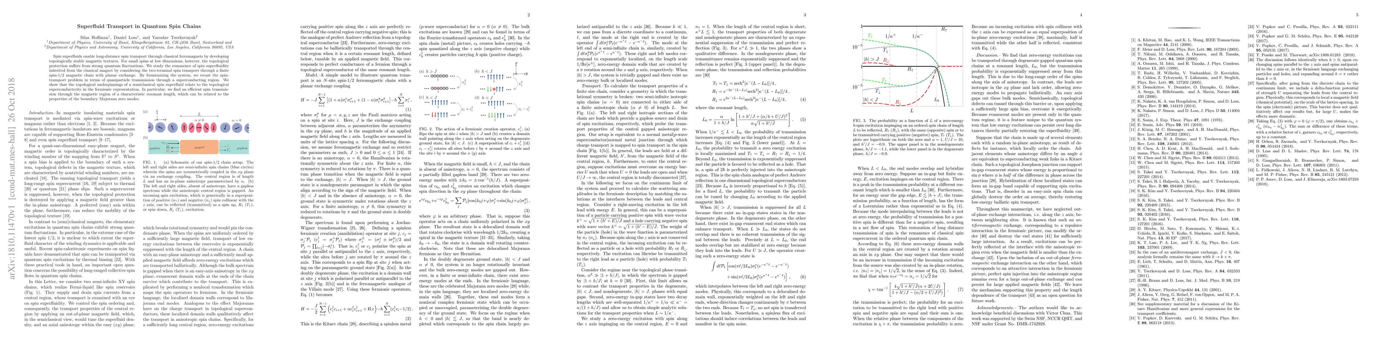 This paper investigates the persistence of spin superfluidity in low-dimensional quantum spin chains, demonstrating that topological superconductivity in fermionic quasiparticles parallels the classical spin superfluid behavior. It finds efficient spin transport through a magnetic chain, linked to boundary Majorana zero modes.