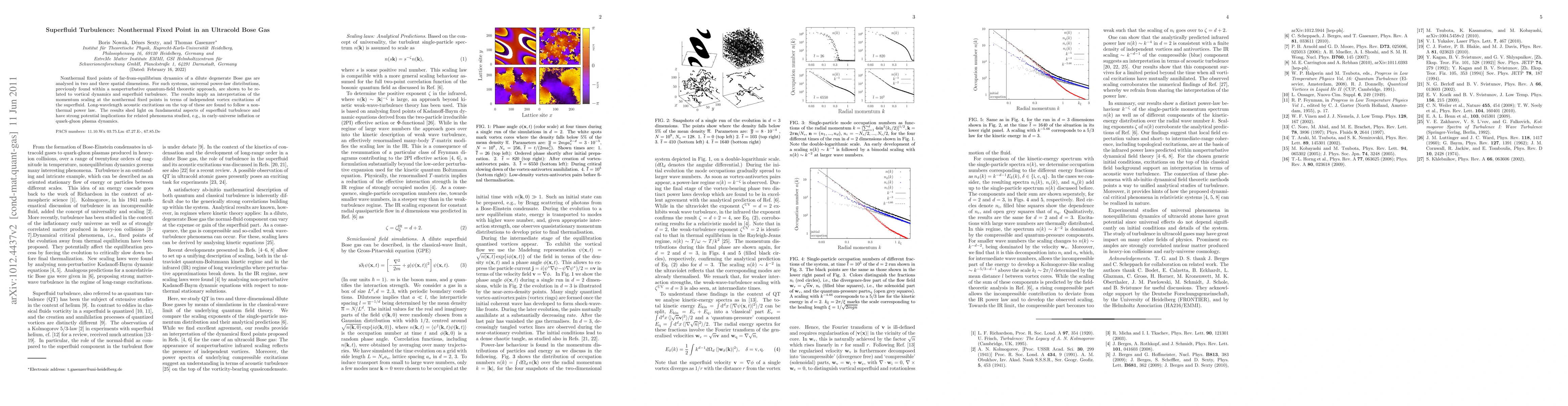 This paper investigates nonthermal fixed points in the dynamics of superfluid turbulence in ultracold Bose gases, revealing universal power-law distributions linked to vortex excitations and superfluid turbulence. The findings suggest a momentum scaling interpretation based on independent vortex dynamics and have implications for early-universe inflation and quark-gluon plasma studies.