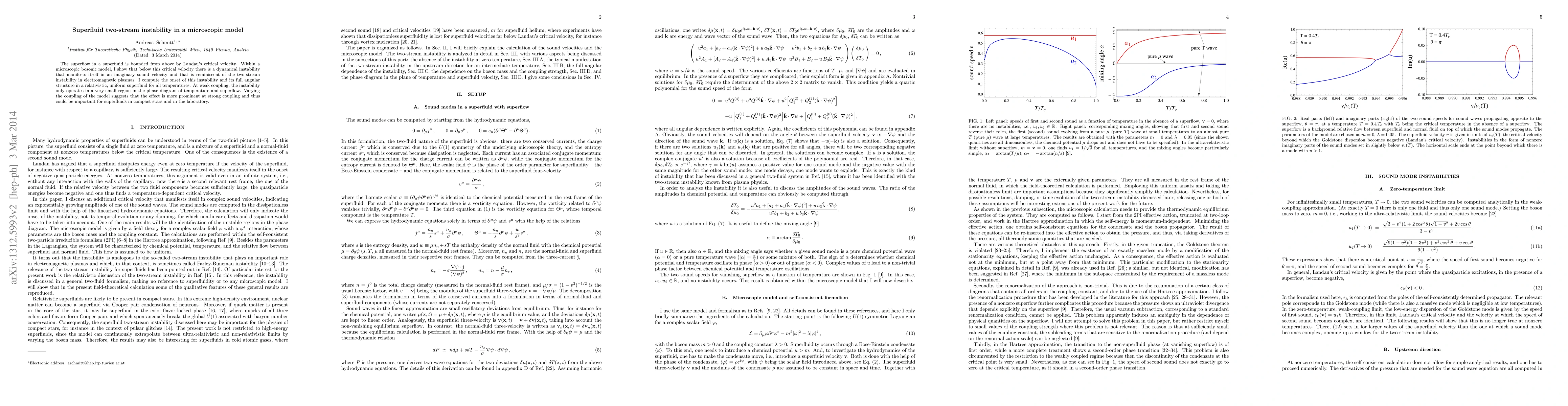 The superflow in a superfluid is bounded from above by Landau's critical velocity. Within a microscopic bosonic model, I show that below this critical velocity there is a dynamical instability that manifests itself in an imaginary sound velocity and that is reminiscent of the two-stream instability in electromagnetic plasmas. I compute the onset of this instability and its full angular structure in a relativistic, uniform superfluid for all temperatures. At weak coupling, the instability only operates in a very small region in the phase diagram of temperature and superflow. Varying the coupling of the model suggests that the effect is more prominent at strong coupling and thus could be important for superfluids in compact stars and in the laboratory.
