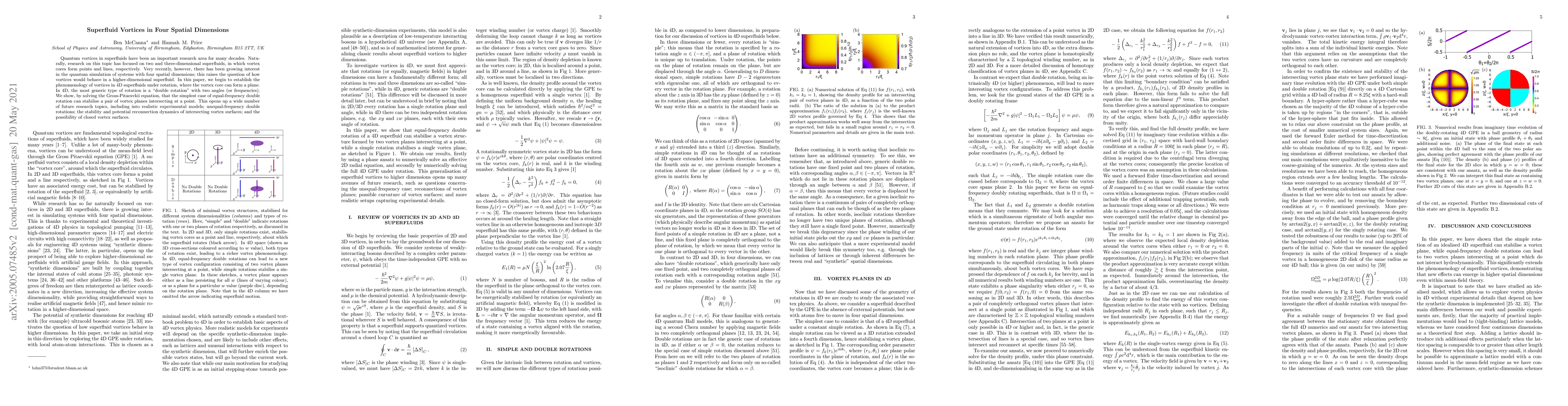 The paper presents a detailed analysis of vortex behavior in 4D superfluids under double rotation, providing a numerical solution to the 4D GPE and validating it against an analytical ansatz.