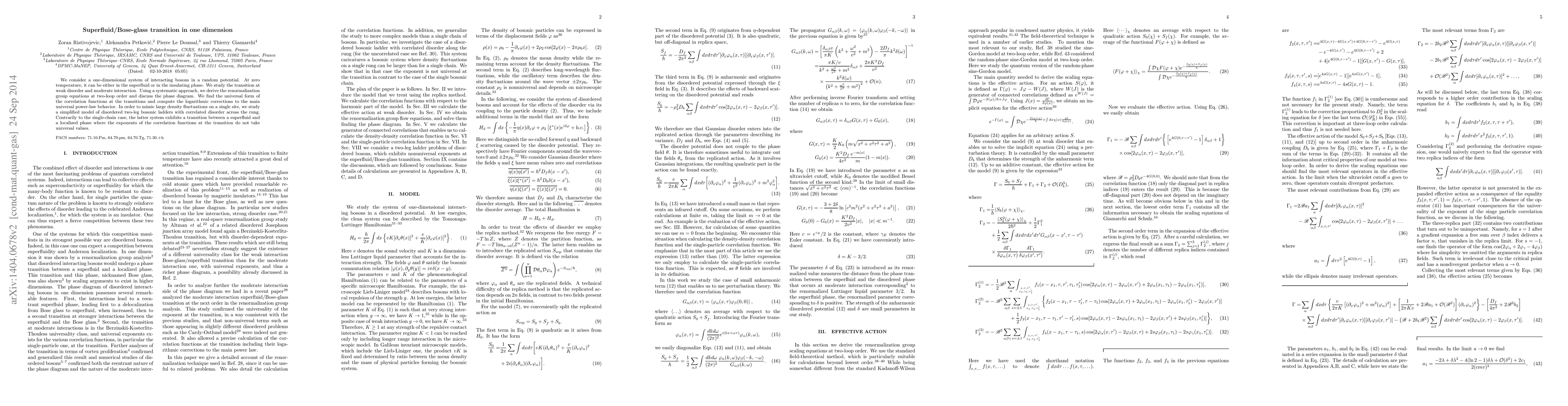 We consider a one-dimensional system of interacting bosons in a random potential. At zero temperature, it can be either in the superfluid or in the insulating phase. We study the transition at weak disorder and moderate interaction. Using a systematic approach, we derive the renormalization group equations at two-loop order and discuss the phase diagram. We find the universal form of the correlation functions at the transitions and compute the logarithmic corrections to the main universal power-law behavior. In order to mimic large density fluctuations on a single site, we study a simplified model of disordered two-leg bosonic ladders with correlated disorder across the rung. Contrarily to the single-chain case, the latter system exhibits a transition between a superfluid and a localized phase where the exponents of the correlation functions at the transition do not take universal values.