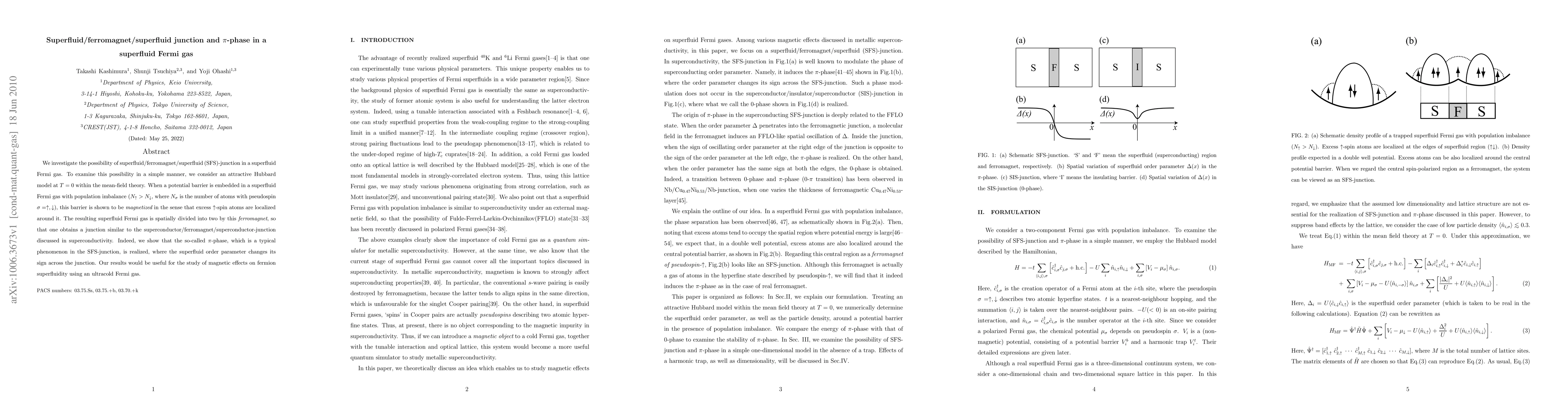 This paper explores the formation of a superfluid/ferromagnet/superfluid (SFS) junction in a superfluid Fermi gas using the attractive Hubbard model at zero temperature. It demonstrates that a potential barrier can magnetize the gas, leading to a ferromagnet that divides the superfluid into two regions, akin to a superconductor/ferromagnet/superconductor junction, and realizes the $\pi$-phase where the superfluid order parameter changes sign across the junction.