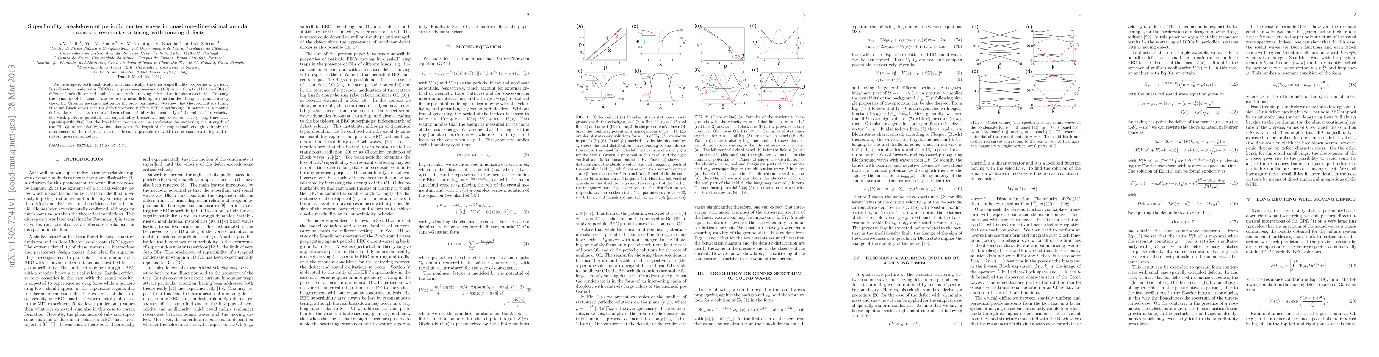 The paper presents a detailed analysis of the dynamics of BECs in quasi-1D traps with moving defects, highlighting the role of resonant scattering in superfluidity breakdown.