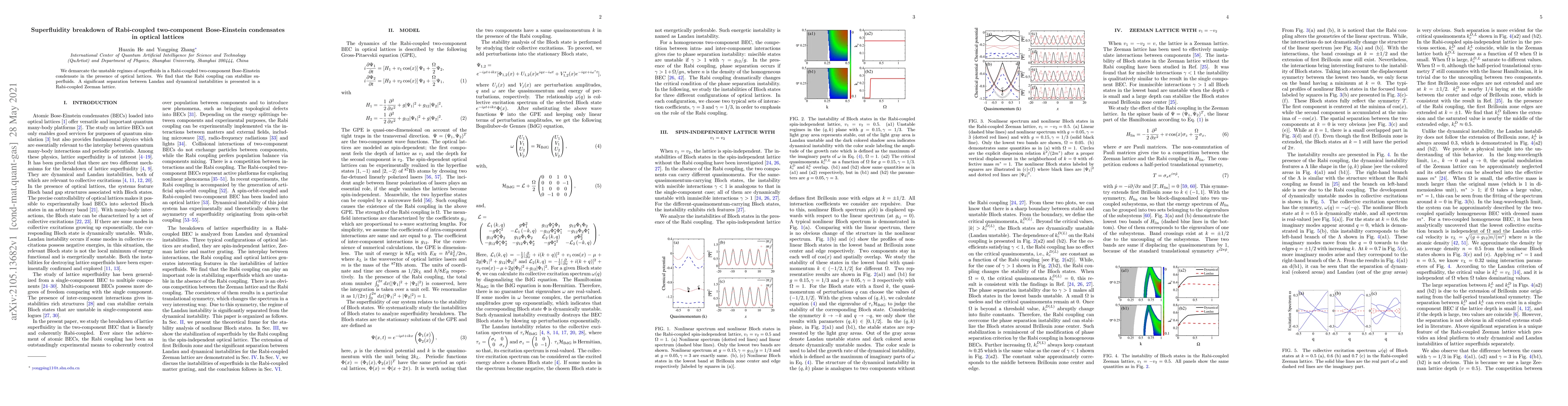 This paper investigates the superfluid breakdown in Rabi-coupled two-component Bose-Einstein condensates within optical lattices, revealing that Rabi coupling can stabilize superfluids and highlighting a distinct separation between Landau and dynamical instabilities in a Rabi-coupled Zeeman lattice.