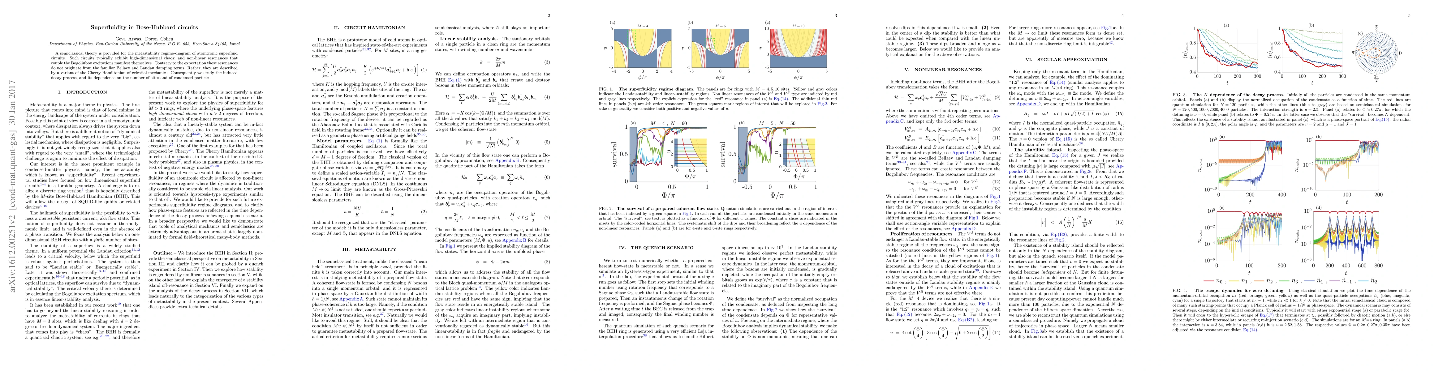 A semiclassical theory is provided for the metastability regime-diagram of atomtronic superfluid circuits. Such circuits typically exhibit high-dimensional chaos; and non-linear resonances that couple the Bogoliubov excitations manifest themselves. Contrary to the expectation these resonances do not originate from the familiar Beliaev and Landau damping terms. Rather, they are described by a variant of the Cherry Hamiltonian of celestial mechanics. Consequently we study the induced decay process, and its dependence on the number of sites and of condensed particles.