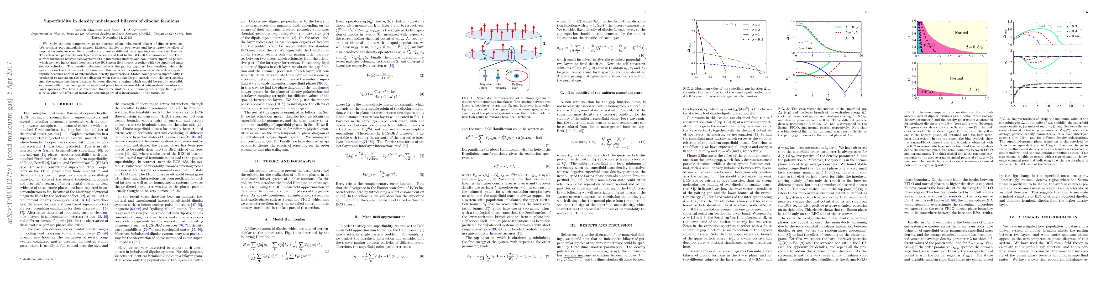 This paper explores the zero-temperature phase diagram of imbalanced bilayers of dipolar fermions, revealing the emergence of superfluid phases influenced by population imbalance and interlayer interactions. Stable homogeneous superfluidity is predicted under specific conditions, while density imbalance reduces the pairing gap, leading to distinct superfluid phases.