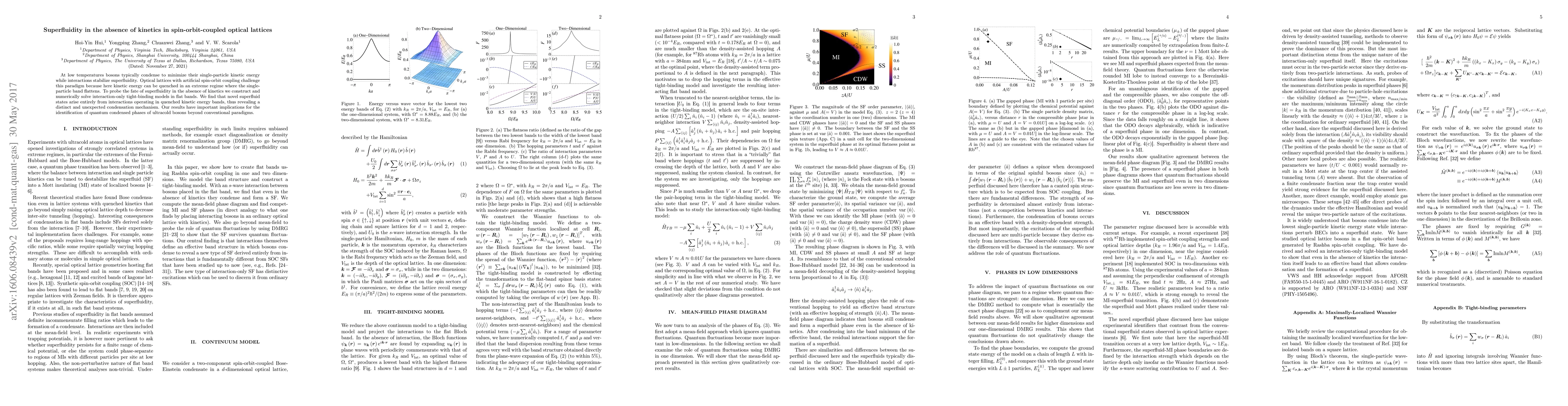 This paper investigates superfluidity in spin-orbit-coupled optical lattices where kinetic energy is quenched, finding that superfluid states emerge purely from interactions in flattened bands. This reveals an unconventional condensation mechanism, challenging traditional paradigms of superfluidity.