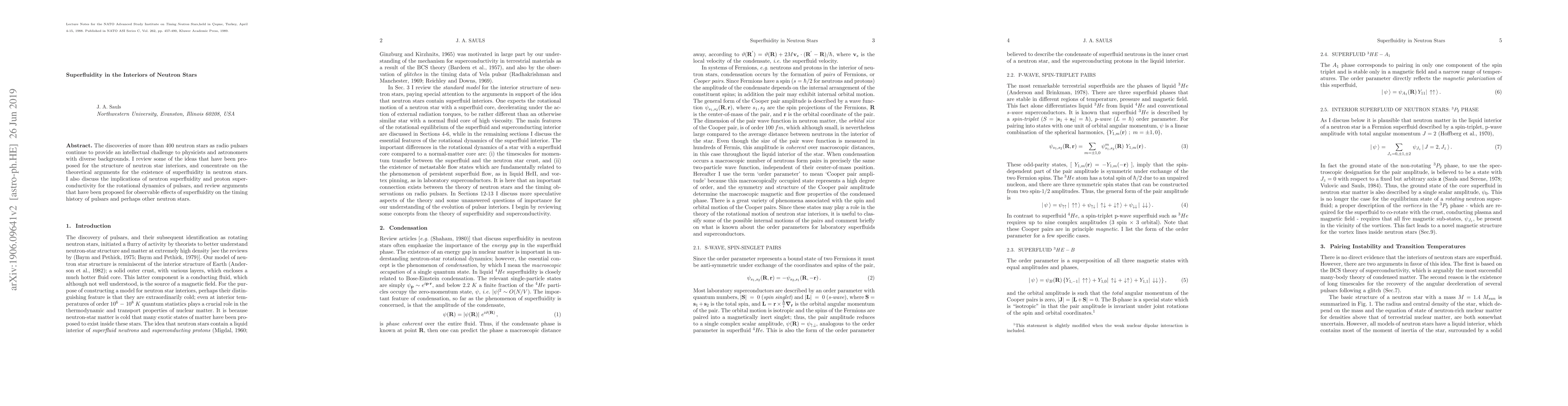 This paper reviews theoretical arguments for superfluidity in neutron star interiors, focusing on its implications for pulsar rotational dynamics and observable effects on pulsar timing. It also discusses unique features of superfluid-superconducting mixtures and the magnetic structure of quantized vortices in neutron superfluids.