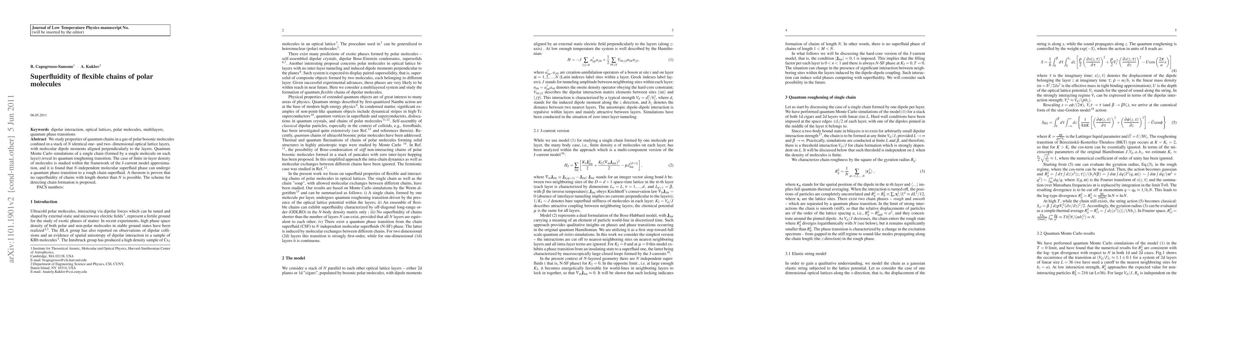 This paper investigates the superfluid properties of flexible chains formed by polar bosonic molecules in optical lattices, revealing a quantum roughening transition and a quantum phase transition to a rough chain superfluid. It also proves that chains shorter than the number of lattice layers cannot exhibit superfluidity.