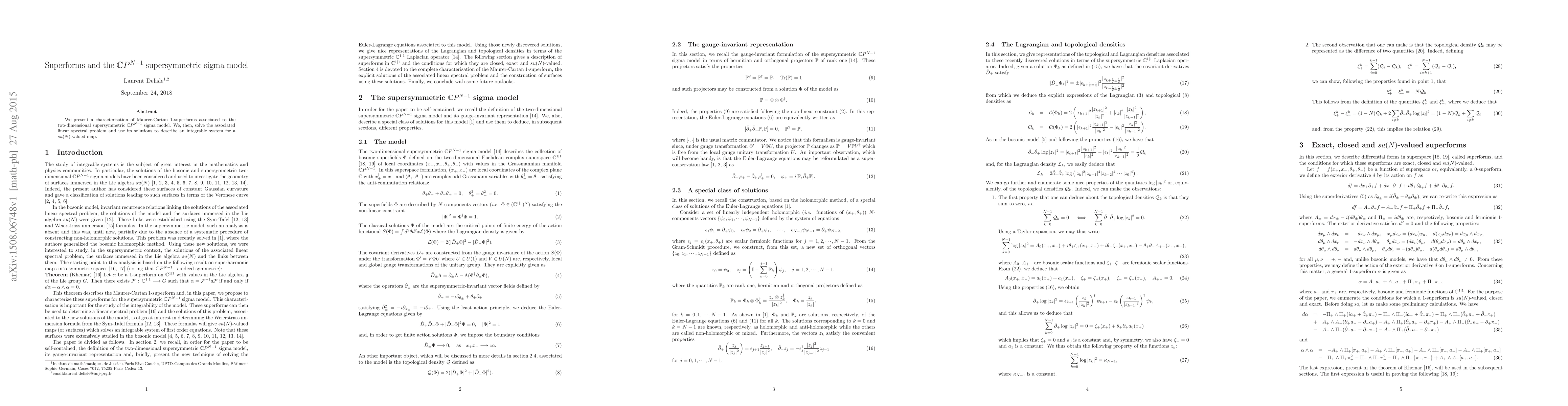 The paper characterizes Maurer-Cartan 1-superforms in the context of the $\mathbb{C}P^{N-1}$ supersymmetric sigma model and solves the associated linear spectral problem to describe an integrable system for a $su(N)$-valued map. This work provides a framework for understanding the dynamics of supersymmetric sigma models through integrable systems.