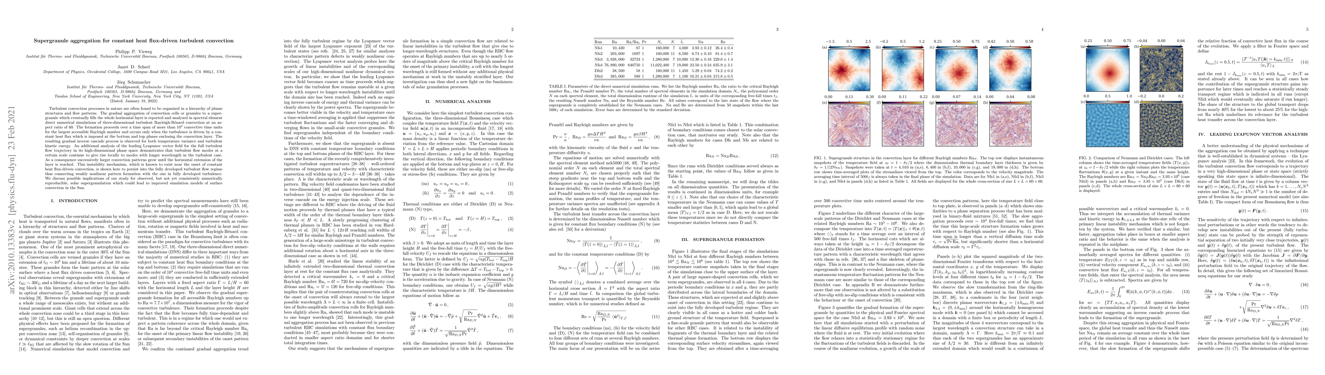This study investigates the aggregation of convection cells into supergranules in turbulent Rayleigh-Bénard convection driven by constant heat flux, revealing a gradual inverse cascade process. The findings suggest a persistent instability mechanism connecting weakly nonlinear pattern formation to fully developed turbulence, with potential implications for solar supergranulation models.