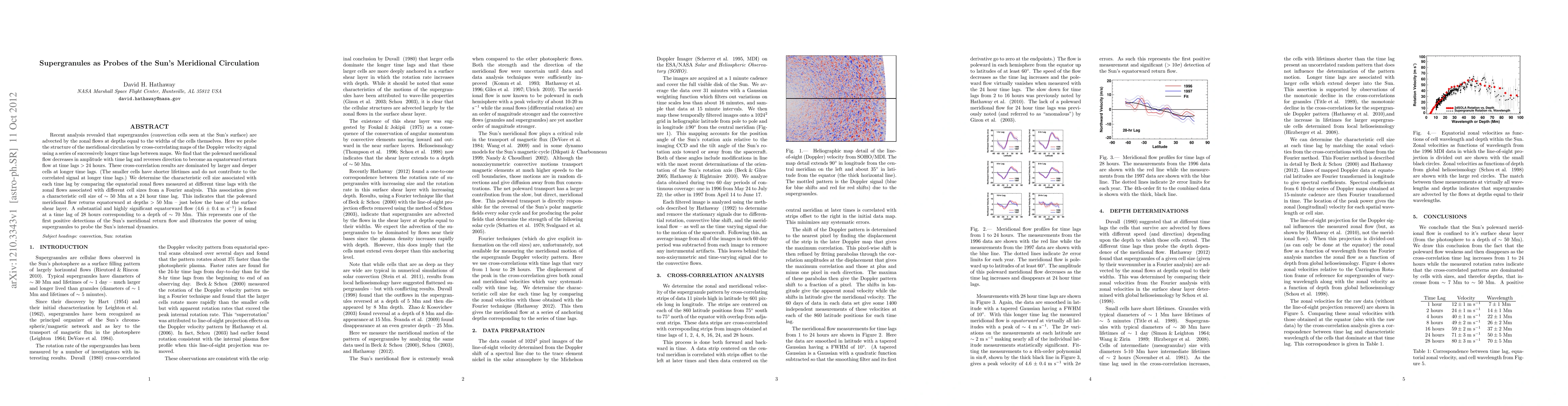 This study uses supergranules to investigate the Sun's meridional circulation, revealing that the poleward flow reverses to an equatorward return flow at depths greater than 50 Mm, with a significant equatorward flow detected at 28 hours and ~70 Mm depth. The findings highlight the utility of supergranules in probing the Sun's internal dynamics.