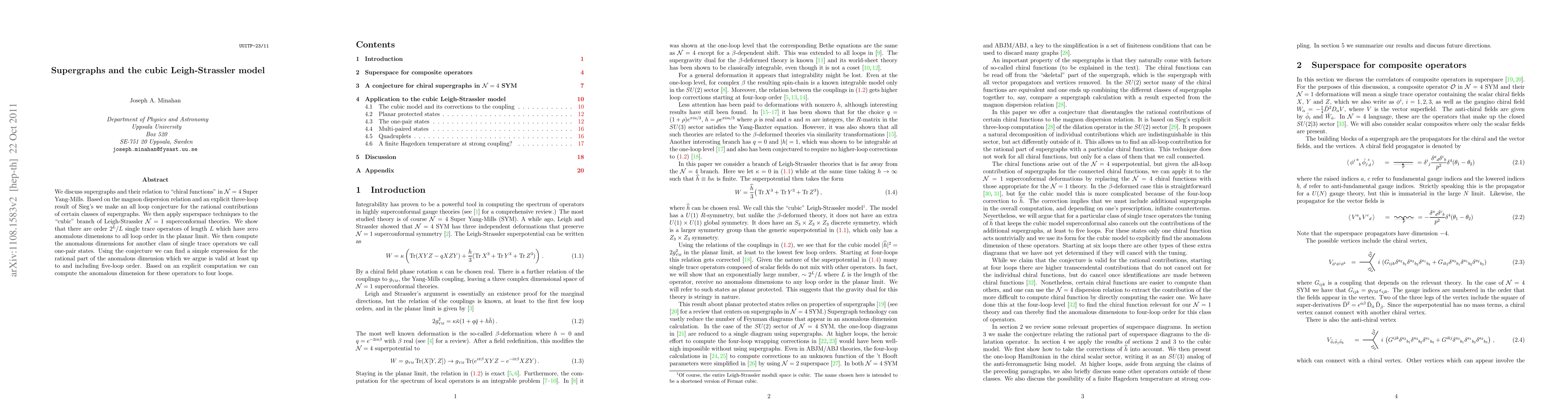 We discuss supergraphs and their relation to "chiral functions" in N=4 Super Yang-Mills. Based on the magnon dispersion relation and an explicit three-loop result of Sieg's we make an all loop conjecture for the rational contributions of certain classes of supergraphs. We then apply superspace techniques to the "cubic" branch of Leigh-Strassler N=1 superconformal theories. We show that there are order 2^L/L single trace operators of length L which have zero anomalous dimensions to all loop order in the planar limit. We then compute the anomalous dimensions for another class of single trace operators we call one-pair states. Using the conjecture we can find a simple expression for the rational part of the anomalous dimension which we argue is valid at least up to and including five-loop order. Based on an explicit computation we can compute the anomalous dimension for these operators to four loops.