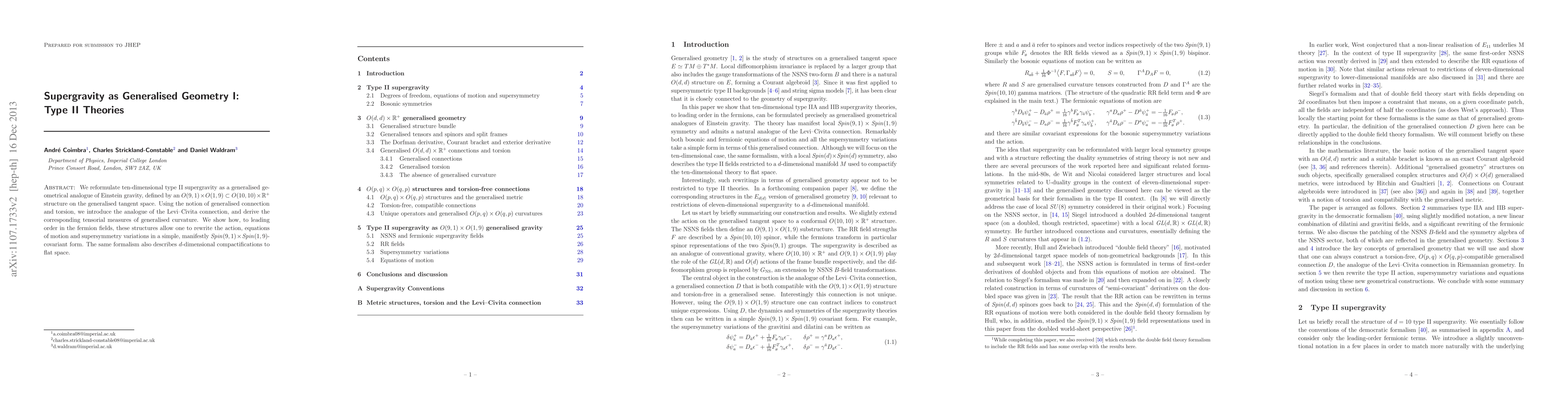 Researchers reformulate type II supergravity as a generalized geometry analogue of Einstein gravity, introducing key concepts like generalised connection and torsion to achieve manifest $ ext{Spin}(9,1) imes ext{Spin}(1,9)$-covariance.