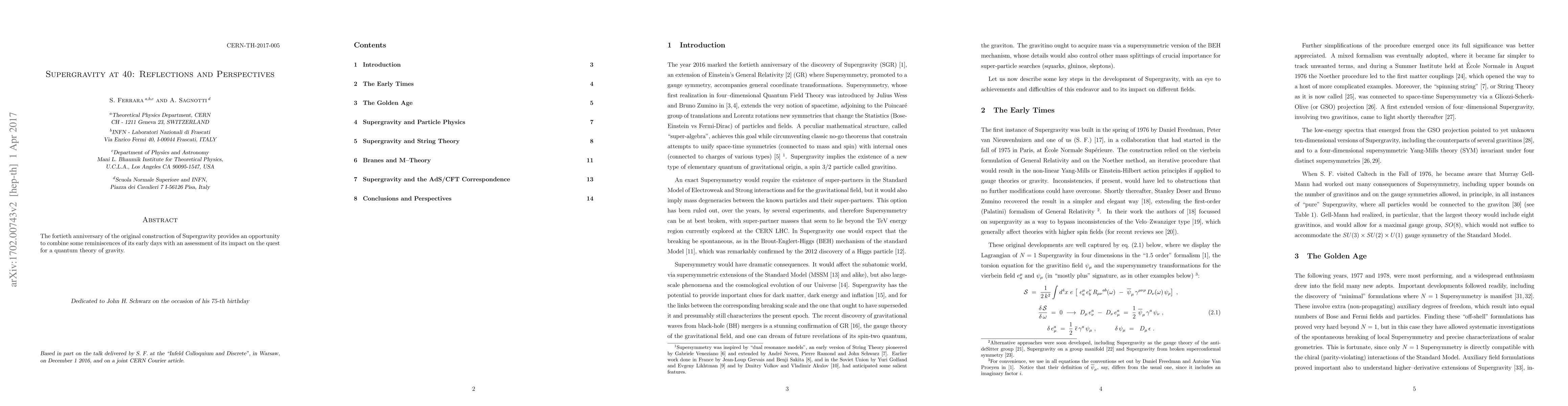 The fortieth anniversary of the original construction of Supergravity provides an opportunity to combine some reminiscences of its early days with an assessment of its impact on the quest for a quantum theory of gravity.