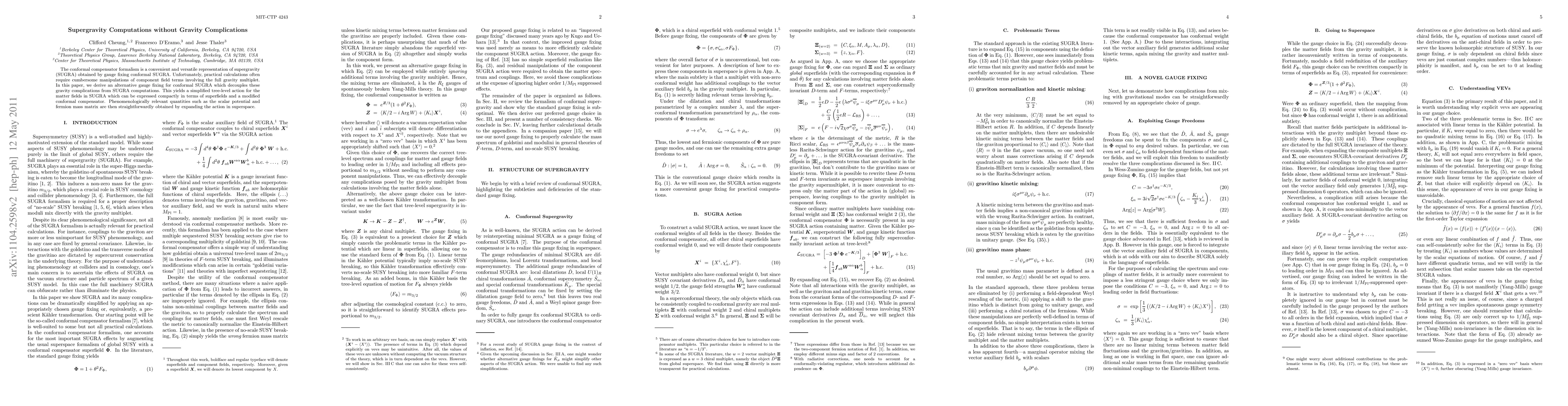 The conformal compensator formalism is a convenient and versatile representation of supergravity (SUGRA) obtained by gauge fixing conformal SUGRA. Unfortunately, practical calculations often require cumbersome manipulations of component field terms involving the full gravity multiplet. In this paper, we derive an alternative gauge fixing for conformal SUGRA which decouples these gravity complications from SUGRA computations. This yields a simplified tree-level action for the matter fields in SUGRA which can be expressed compactly in terms of superfields and a modified conformal compensator. Phenomenologically relevant quantities such as the scalar potential and fermion mass matrix are then straightforwardly obtained by expanding the action in superspace.