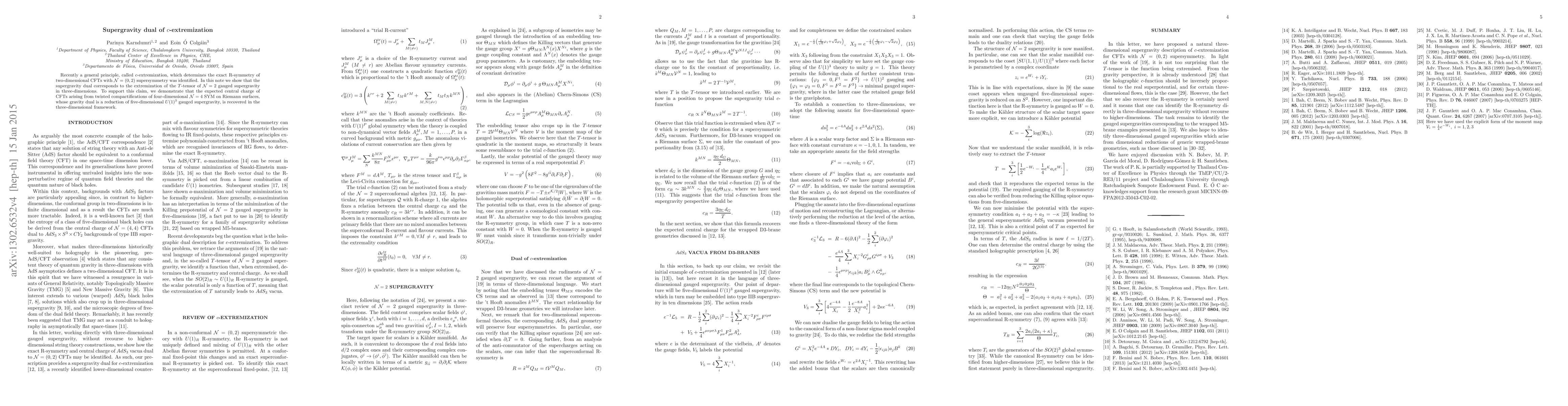 This paper demonstrates that the supergravity dual of c-extremization in two-dimensional SCFTs corresponds to extremizing the T-tensor in N = 2 gauged supergravity in three dimensions, showing consistency through examples from four-dimensional N = 4 SYM.