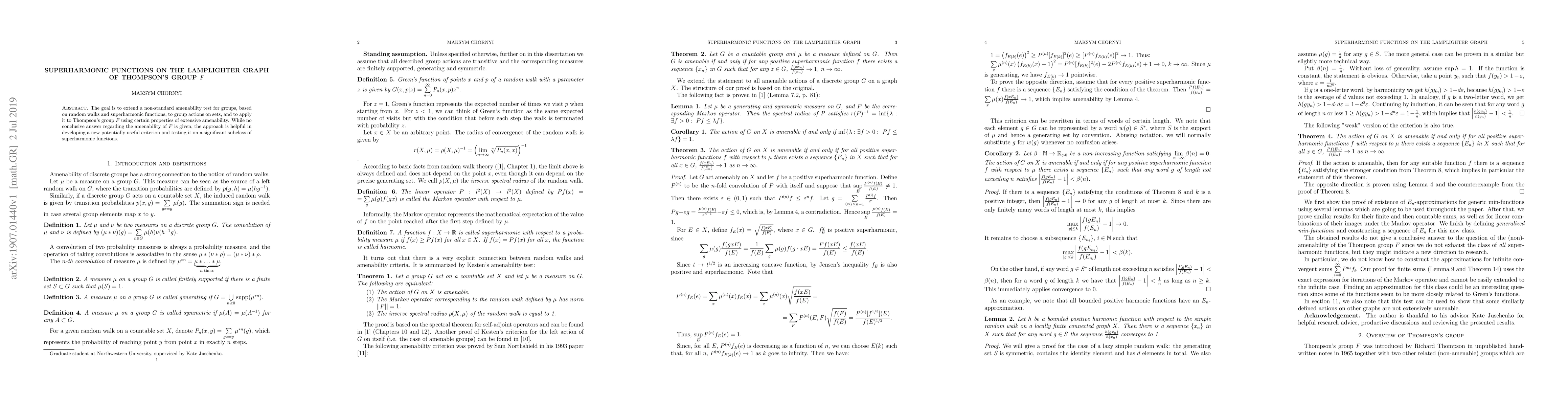 The goal is to extend a non-standard amenability test for groups, based on random walks and superharmonic functions, to group actions on sets, and to apply it to Thompson's group F using certain properties of extensive amenability. While no conclusive answer regarding the amenability of F is given, the approach is helpful in developing a new potentially useful criterion and testing it on a significant subclass of superharmonic functions.