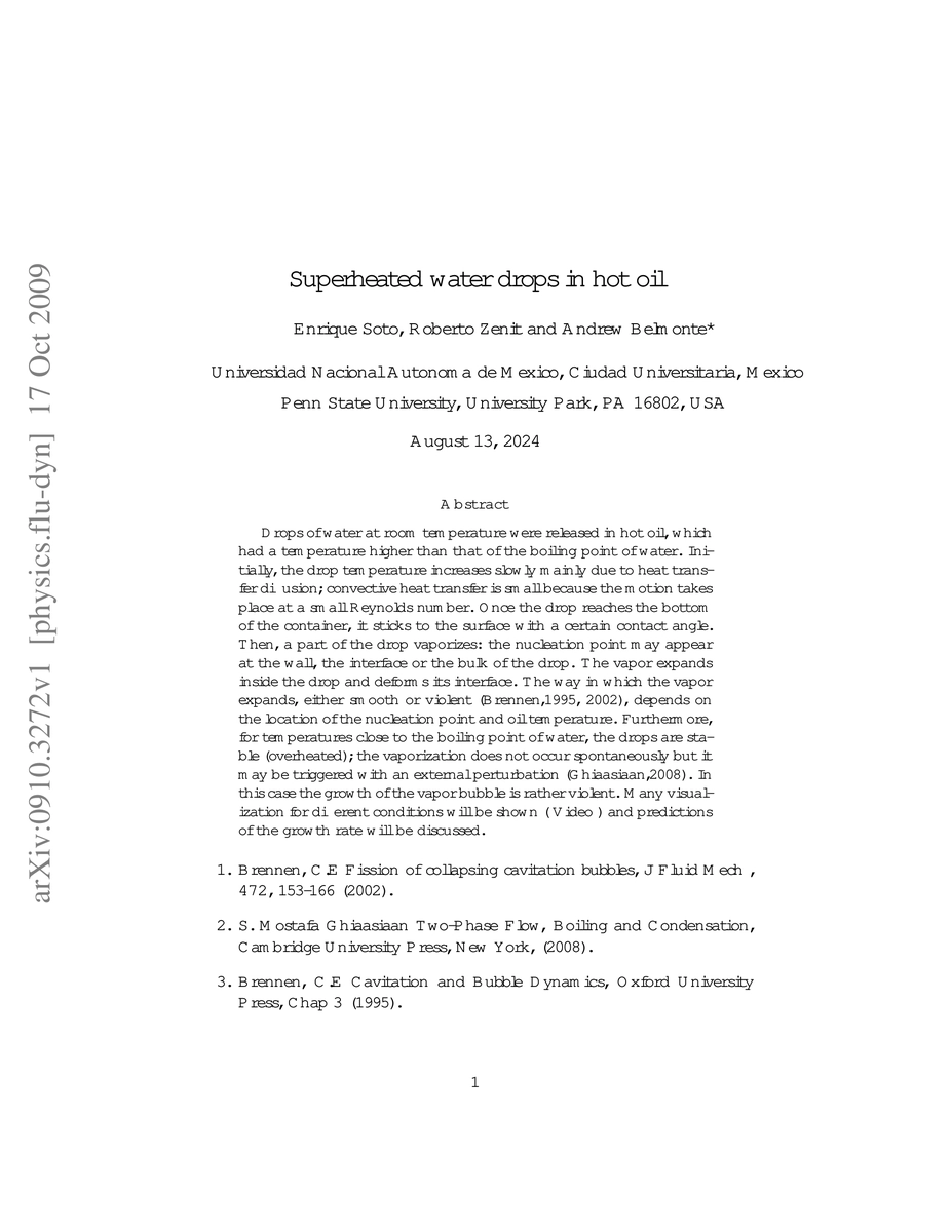 This study investigates the behavior of room temperature water drops introduced into hot oil exceeding the boiling point of water, focusing on the heat transfer dynamics and vaporization processes. The paper explores the conditions under which vapor bubbles form and expand, either smoothly or violently, depending on the nucleation site and oil temperature.