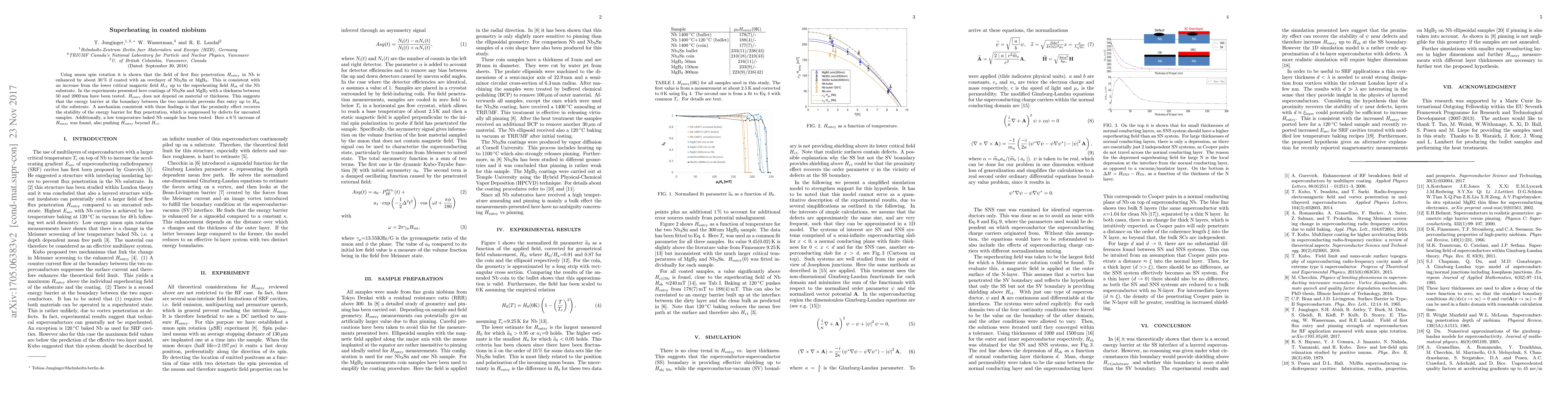 Using muon spin rotation it is shown that the field of first flux penetration H_entry in Nb is enhanced by about 30% if coated with an overlayer of Nb_3Sn or MgB_2. This is consistent with an increase from the lower critical magnetic field H_c1 up to the superheating field H_sh of the Nb substrate. In the experiments presented here coatings of Nb_3Sn and MgB_2 with a thickness between 50 and 2000nm have been tested. H_entry does not depend on material or thickness. This suggests that the energy barrier at the boundary between the two materials prevents flux entry up to H_sh of the substrate. A mechanism consistent with these findings is that the proximity effect recovers the stability of the energy barrier for flux penetration, which is suppressed by defects for uncoated samples. Additionally, a low temperature baked Nb sample has been tested. Here a 6% increase of H_entry was found, also pushing H_entry beyond H_c1.