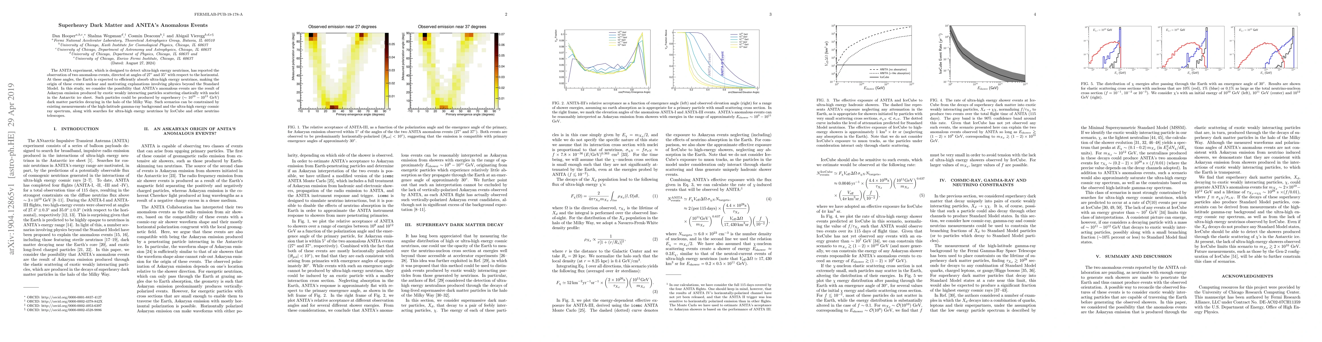 This work is novel in proposing superheavy dark matter decay as a source of exotic weakly interacting particles that could produce ANITA's anomalous events, interpreting them as Askaryan emission from particles transparent to the Earth, and exploring constraints using existing cosmic-ray, gamma-ray, and neutrino measurements.