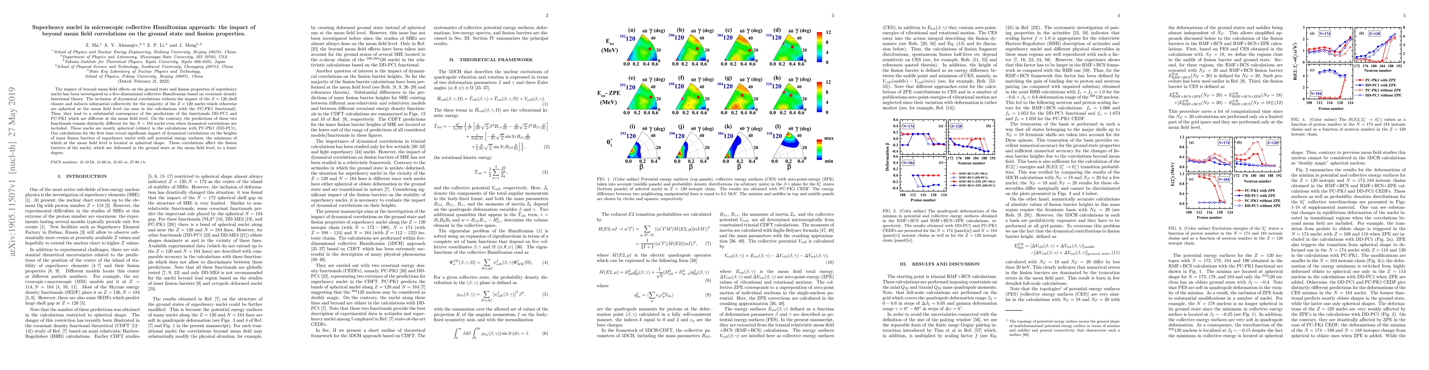 This paper investigates the influence of beyond mean field correlations on the ground state and fission properties of superheavy nuclei using a five-dimensional collective Hamiltonian. The study finds that these correlations significantly alter the shapes and fission barriers of superheavy nuclei, particularly those with the $Z=120$ shell closure, leading to a convergence in predictions between different functionals.