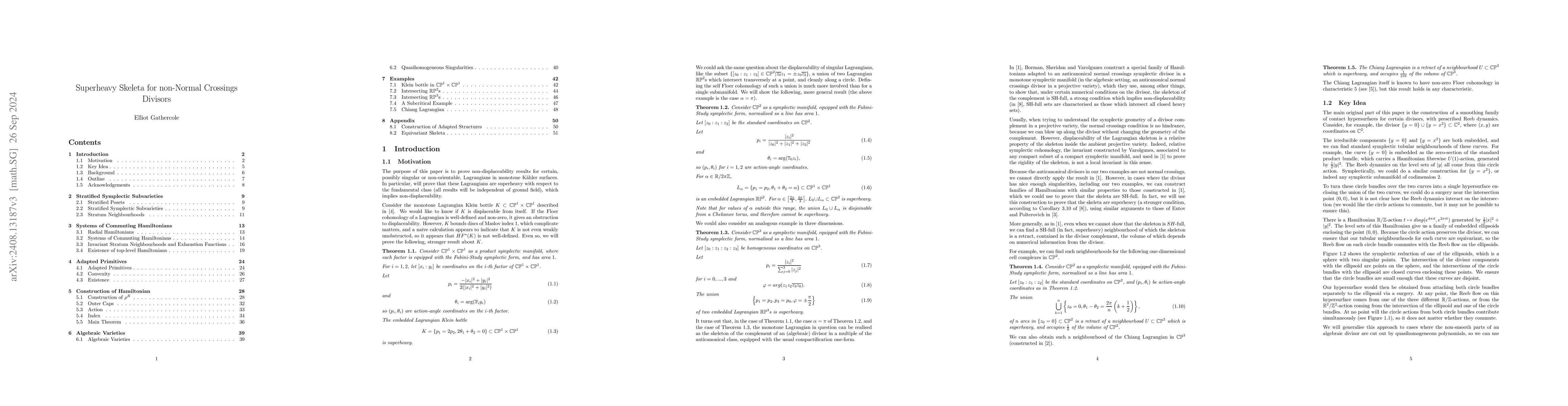 This paper constructs smoothing families of contact hypersurfaces for non-normal crossings divisors in projective varieties, demonstrating that the resulting Lagrangian skeleta of divisor complements are superheavy, providing useful examples when Lagrangian Floer theory is not feasible.