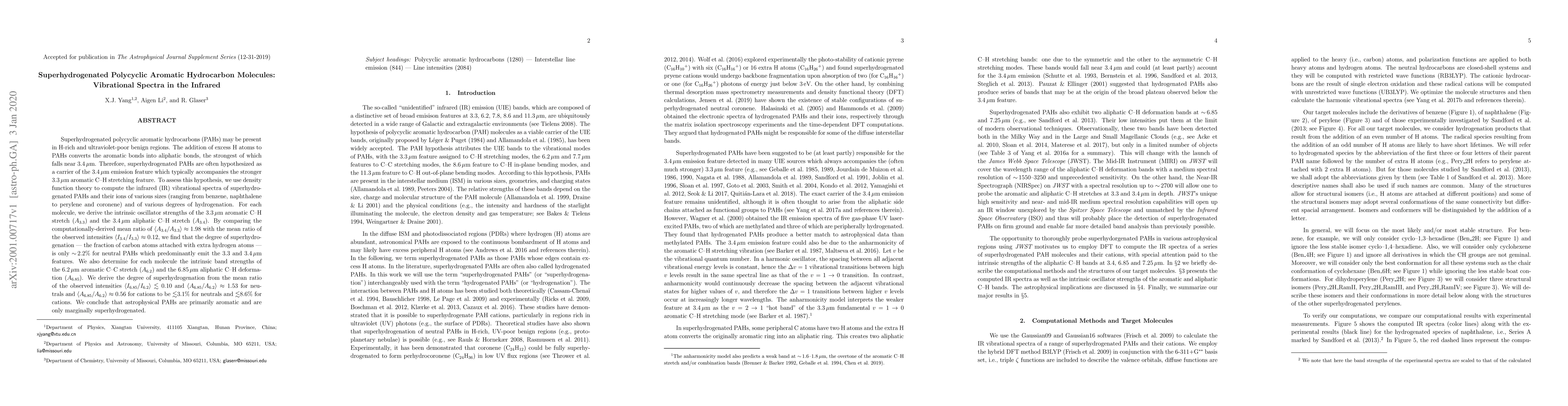 Superhydrogenated polycyclic aromatic hydrocarbons (PAHs) may be present in H-rich and ultraviolet-poor benign regions. The addition of excess H atoms to PAHs converts the aromatic bonds into aliphatic bonds, the strongest of which falls near 3.4 $\mu$m. Therefore, superhydrogenated PAHs are often hypothesized as a carrier of the 3.4 $\mu$m emission feature which typically accompanies the stronger 3.3 $\mu$m aromatic C--H stretching feature. To assess this hypothesis, we use density function theory to compute the IR vibrational spectra of superhydrogenated PAHs and their ions of various sizes (ranging from benzene, naphthalene to perylene and coronene) and of various degrees of hydrogenation (ranging from minimal hydrogenation to heavy hydrogenation). For each molecule, we derive the intrinsic oscillator strengths of the 3.3 $\mu$m aromatic C--H stretch ($A_{3.3}$) and the 3.4 $\mu$m aliphatic C--H stretch ($A_{3.4}$). By comparing the computationally-derived mean ratio of $\langle A_{3.4}/A_{3.3}\rangle\sim1.98$ with the mean ratio of the observed intensities $\langle I_{3.4}/I_{3.3}\rangle\sim0.12$, we find that the degree of superhydrogenation --- the fraction of C atoms attached with excess H atoms --- is only $\sim2.2\%$ for neutral PAHs which predominantly emit the 3.3 and 3.4 $\mu$m features. We also determine for each molecule the intrinsic band strengths of the 6.2 $\mu$m aromatic C--C stretch ($A_{6.2}$) and the 6.85 $\mu$m aliphatic C--H deformation ($A_{6.85}$). We derive the degree of superhydrogenation from the mean ratio of the observed intensities $\langle I_{6.85}/I_{6.2}\rangle\sim0.10$ and $\langle A_{6.85}/A_{6.2}\rangle\sim1.53$ for neutrals and $\langle A_{6.85}/A_{6.2}\rangle\sim1.23$ for cations to be $\lesssim 3.1\%$ for neutrals and $\lesssim 8.6\%$ for cations. We conclude that astrophysical PAHs are primarily aromatic and are only marginally superhydrogenated.