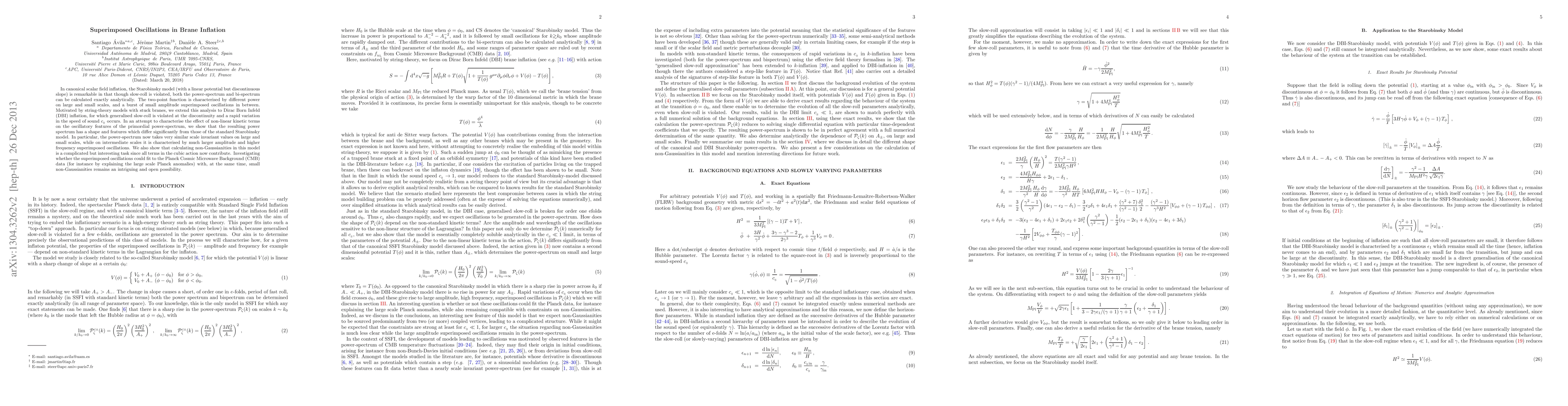 In canonical scalar field inflation, the Starobinsky model (with a linear potential but discontinuous slope) is remarkable in that though slow-roll is violated, both the power-spectrum and bi-spectrum can be calculated exactly analytically. The two-point function is characterised by different power on large and small scales, and a burst of small amplitude superimposed oscillations in between. Motivated by string-theory models with stuck branes, we extend this analysis to Dirac Born Infeld (DBI) inflation, for which generalised slow-roll is violated at the discontinuity and a rapid variation in the speed of sound c_s occurs. In an attempt to characterise the effect of non-linear kinetic terms on the oscillatory features of the primordial power-spectrum, we show that the resulting power spectrum has a shape and features which differ significantly from those of the standard Starobinsky model. In particular, the power-spectrum now takes very similar scale invariant values on large and small scales, while on intermediate scales it is characterised by much larger amplitude and higher frequency superimposed oscillations. We also show that calculating non-Gaussianities in this model is a complicated but interesting task since all terms in the cubic action now contribute. Investigating whether the superimposed oscillations could fit to the Planck Cosmic Microwave Background (CMB) data (for instance by explaining the large scale Planck anomalies) with, at the same time, small non-Gaussianities remains an intriguing and open possibility.