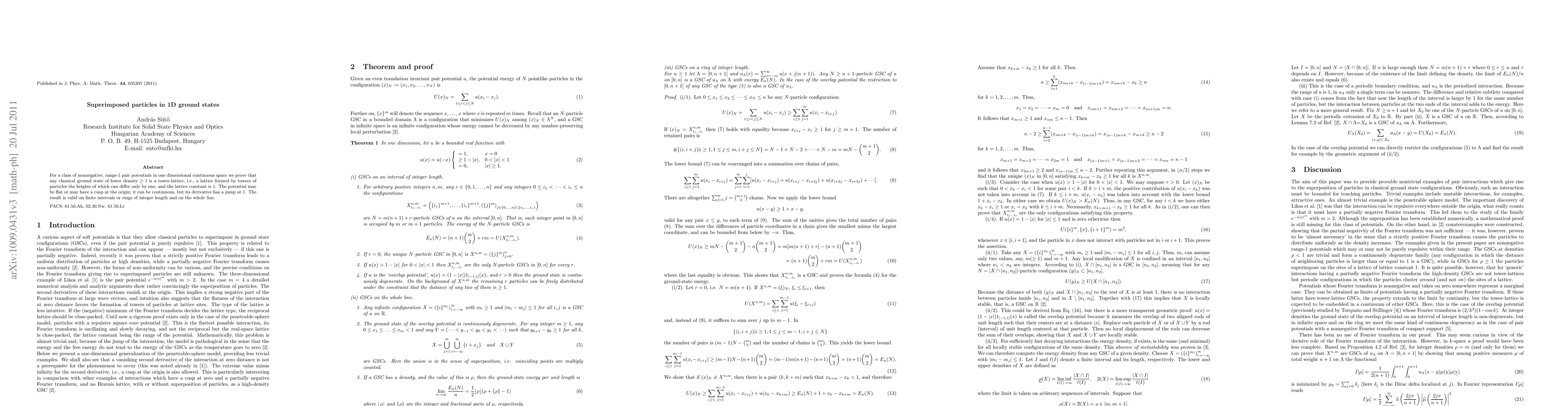 Researchers prove that certain types of particles in one-dimensional space form a specific type of lattice structure called towers-lattices when they occupy ground states with low density. This finding applies to various potential profiles and is valid for both finite intervals and the entire line.