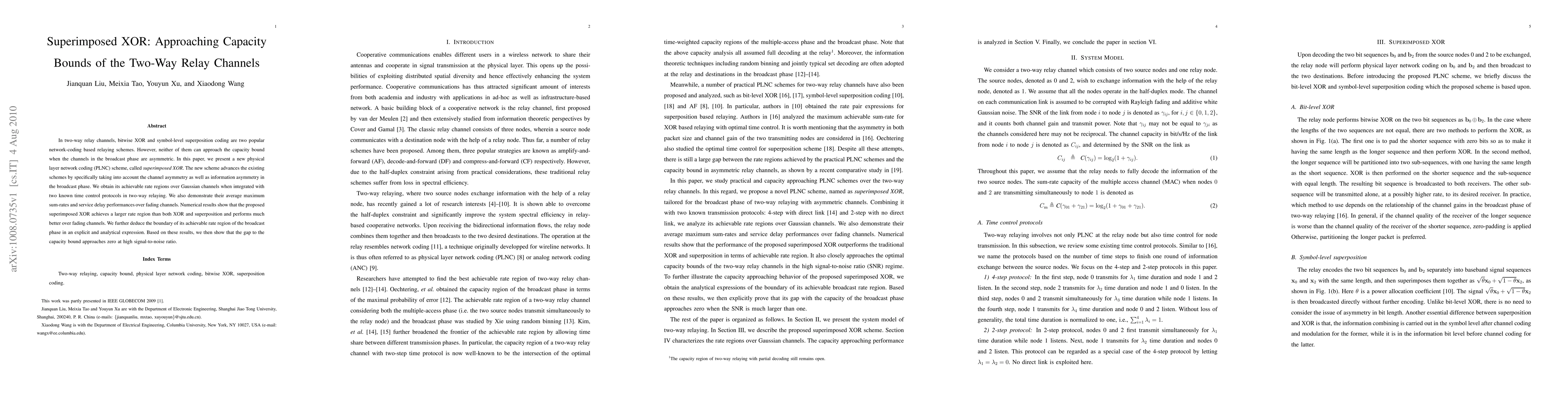 This paper introduces a new superimposed XOR physical layer network coding scheme for two-way relay channels, which outperforms traditional XOR and superposition methods by addressing channel and information asymmetry. The proposed scheme achieves higher rate regions and better performance over fading channels, approaching capacity bounds at high signal-to-noise ratios.