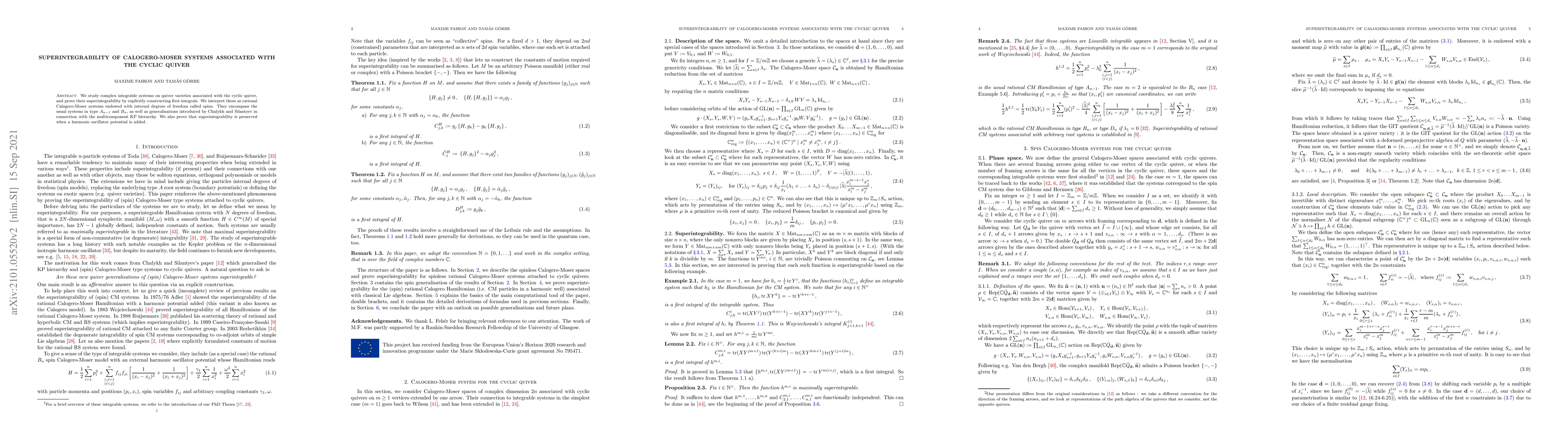 We study complex integrable systems on quiver varieties associated with the cyclic quiver, and prove their superintegrability by explicitly constructing first integrals. We interpret them as rational Calogero-Moser systems endowed with internal degrees of freedom called spins. They encompass the usual systems in type $A_{n-1}$ and $B_n$, as well as generalisations introduced by Chalykh and Silantyev in connection with the multicomponent KP hierarchy. We also prove that superintegrability is preserved when a harmonic oscillator potential is added.