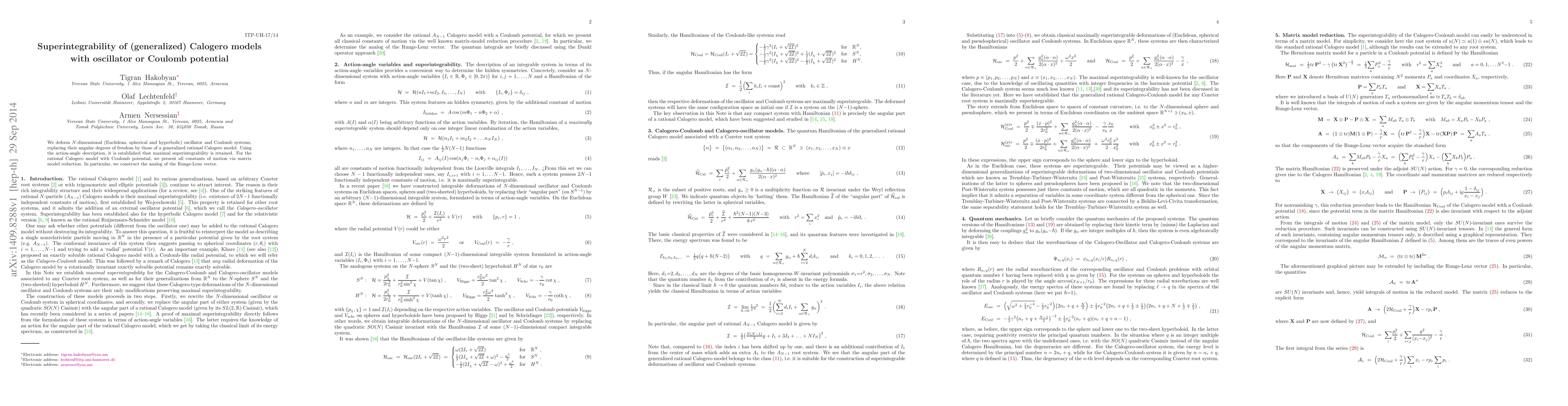 This paper explores the superintegrability of deformed N-dimensional oscillator and Coulomb systems by incorporating generalized Calogero models. It demonstrates that maximal superintegrability is preserved and provides all constants of motion for the rational Calogero model with Coulomb potential through matrix model reduction.