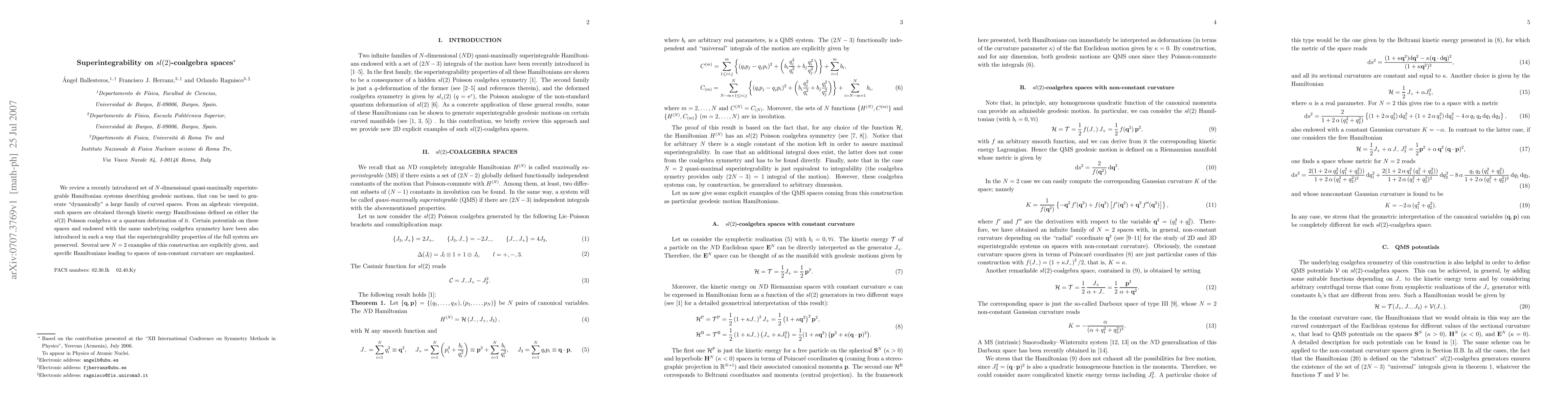 We review a recently introduced set of N-dimensional quasi-maximally superintegrable Hamiltonian systems describing geodesic motions, that can be used to generate "dynamically" a large family of curved spaces. From an algebraic viewpoint, such spaces are obtained through kinetic energy Hamiltonians defined on either the sl(2) Poisson coalgebra or a quantum deformation of it. Certain potentials on these spaces and endowed with the same underlying coalgebra symmetry have been also introduced in such a way that the superintegrability properties of the full system are preserved. Several new N=2 examples of this construction are explicitly given, and specific Hamiltonians leading to spaces of non-constant curvature are emphasized.