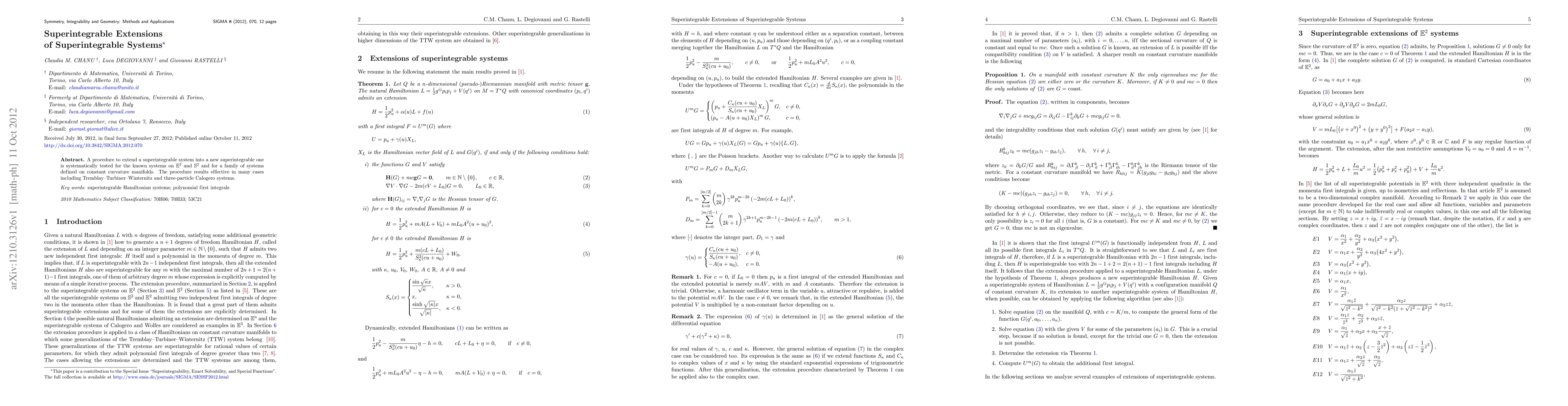 This paper proposes a method to extend existing superintegrable systems into new superintegrable ones, successfully applying it to systems on $\mathbb E^2$ and $\mathbb S^2$, and demonstrating its effectiveness in cases like the Tremblay-Turbiner-Winternitz and three-particle Calogero systems.