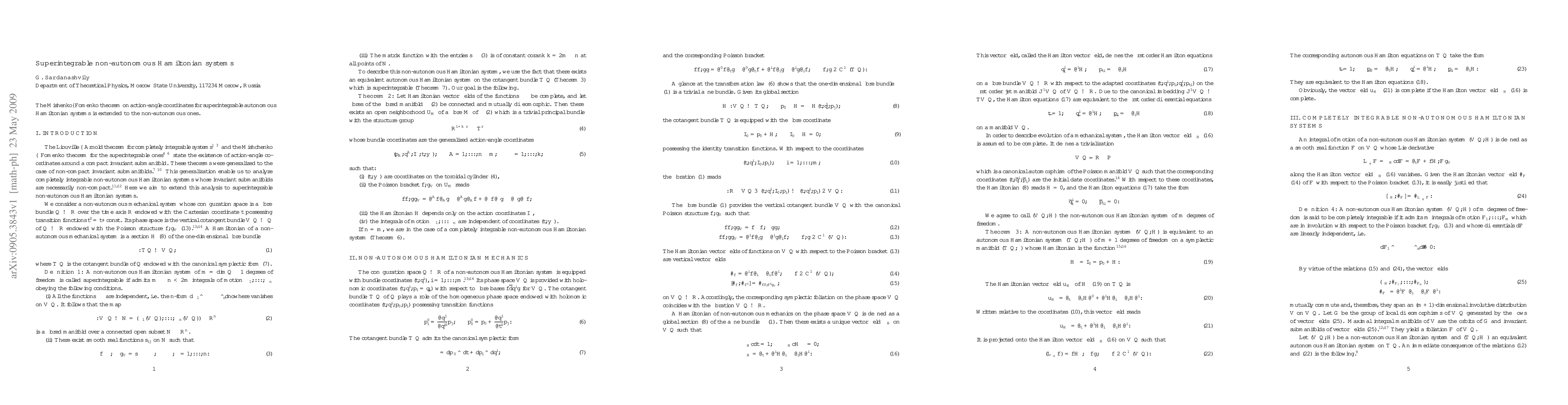Summary: This paper extends the Mishenko-Fomenko theorem on action-angle coordinates to superintegrable non-autonomous Hamiltonian systems, providing a framework for understanding these complex systems.