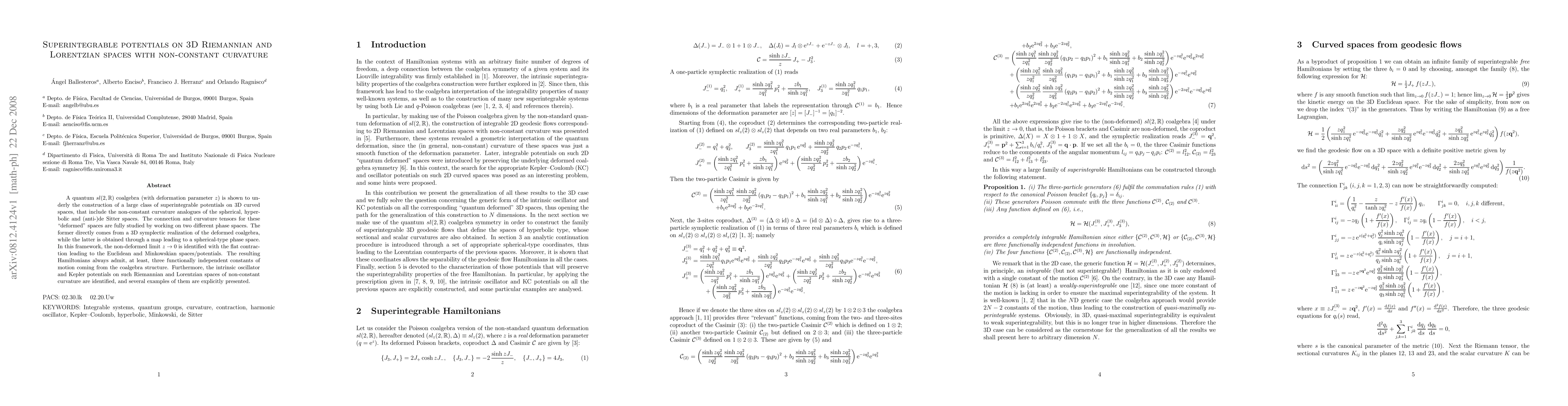 This paper constructs a class of superintegrable potentials on 3D curved Riemannian and Lorentzian spaces using a quantum sl(2,R) coalgebra, identifying intrinsic oscillator and Kepler potentials on these spaces. The study reveals that the Hamiltonians possess at least three functionally independent constants of motion derived from the coalgebra structure.