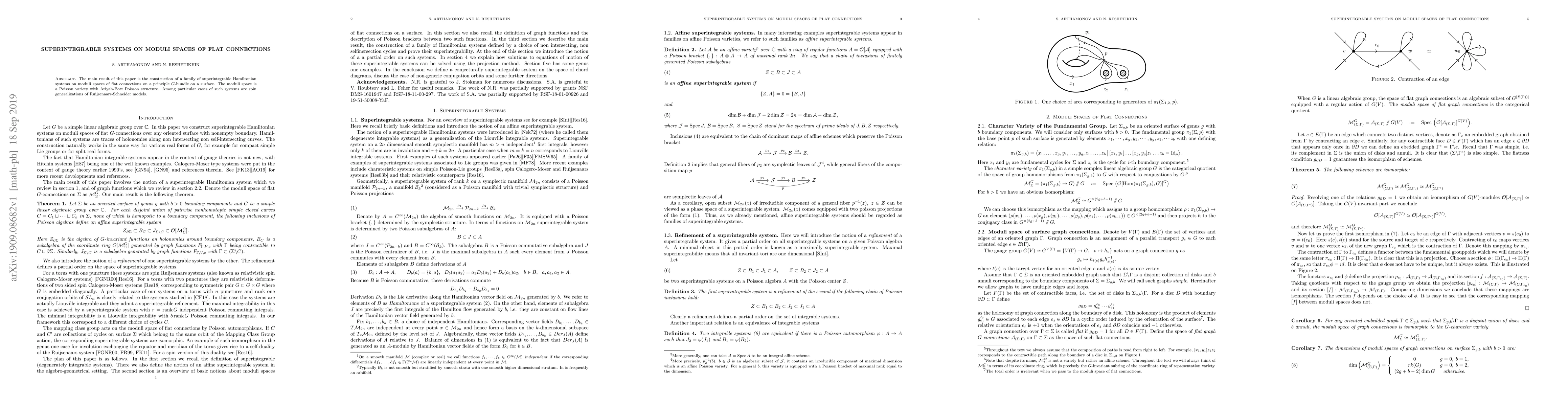 This paper constructs superintegrable Hamiltonian systems on moduli spaces of flat connections, showcasing an Atiyah-Bott Poisson structure and highlighting spin generalizations of Ruijsenaars-Schneider models as particular instances.