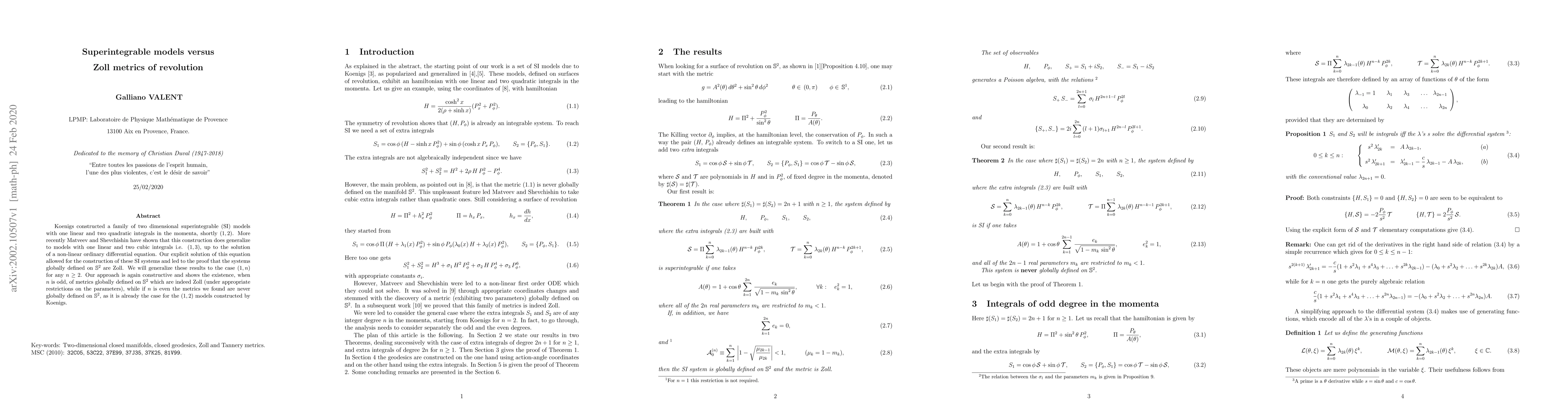 This paper explores the construction of two-dimensional superintegrable systems with various polynomial integrals and proves that these systems, when globally defined on the sphere S^2, are Zoll metrics of revolution. The authors extend the results to higher-order integrals, showing the existence of Zoll metrics for odd n while none exist for even n.