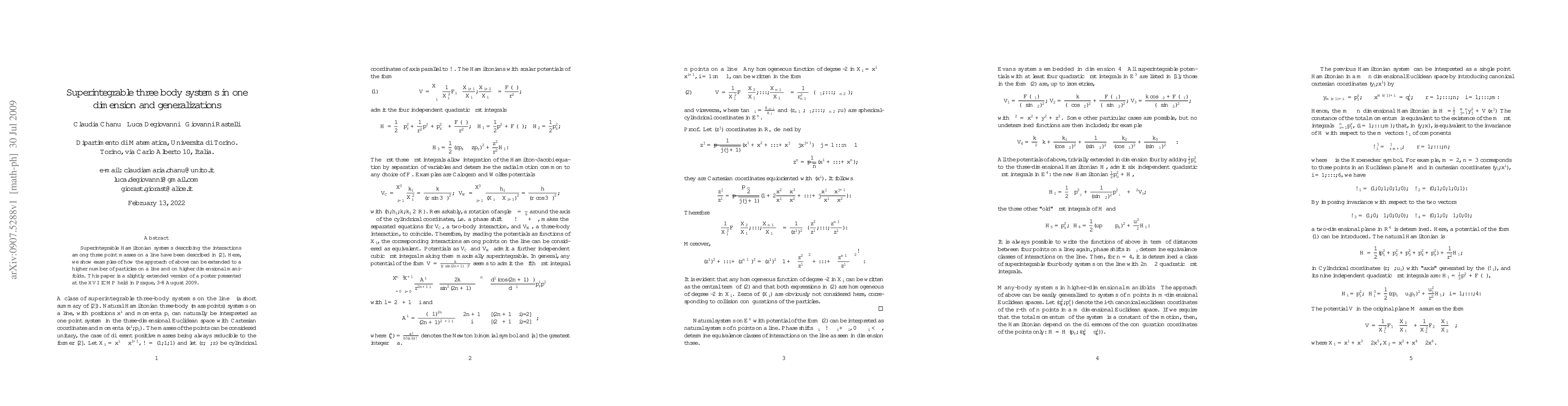 This paper extends the concept of superintegrable systems to higher dimensions and more particles, showing examples of its applicability in physics.