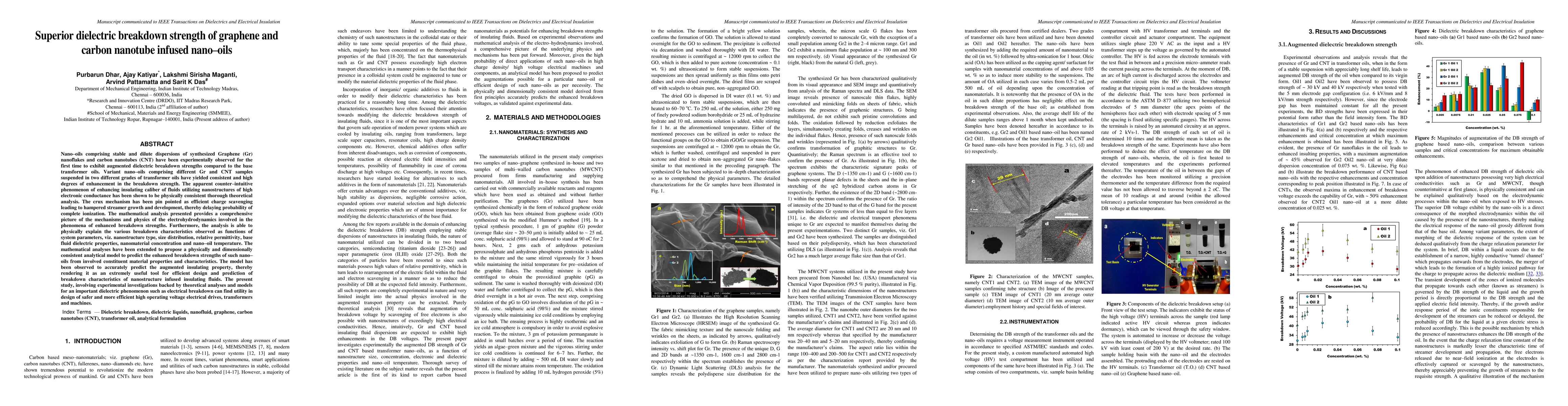 This paper demonstrates that graphene and carbon nanotube infused nano oils exhibit superior dielectric breakdown strengths compared to conventional transformer oils, attributing the enhancement to efficient charge scavenging that hinders streamer growth. The study provides a comprehensive analytical model to predict these enhanced insulating properties based on nanostructure and fluid characteristics.