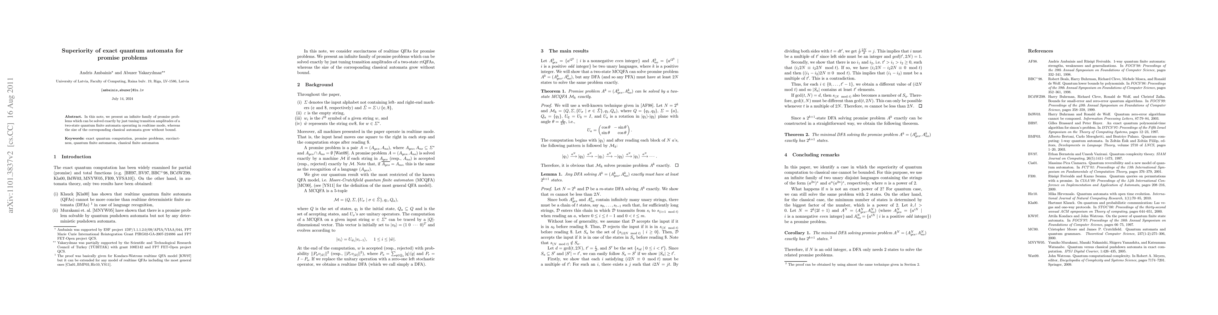 Researchers found a way to solve promise problems exactly using two-state quantum finite automata, outperforming classical automata in terms of computational complexity. This achievement showcases the potential power of quantum computing for solving certain problems.