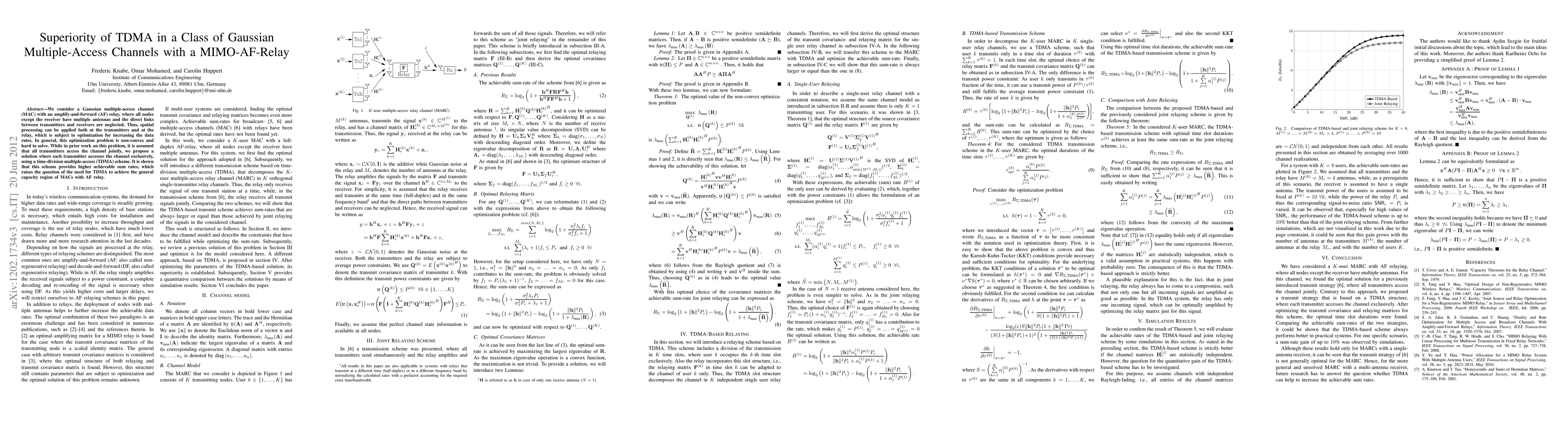 This paper investigates a Gaussian multiple-access channel with an amplify-and-forward relay and multiple antennas at all nodes except the receiver. It proposes a time-division multiple-access (TDMA) scheme for exclusive access, demonstrating superior achievable sum rates compared to joint access methods.