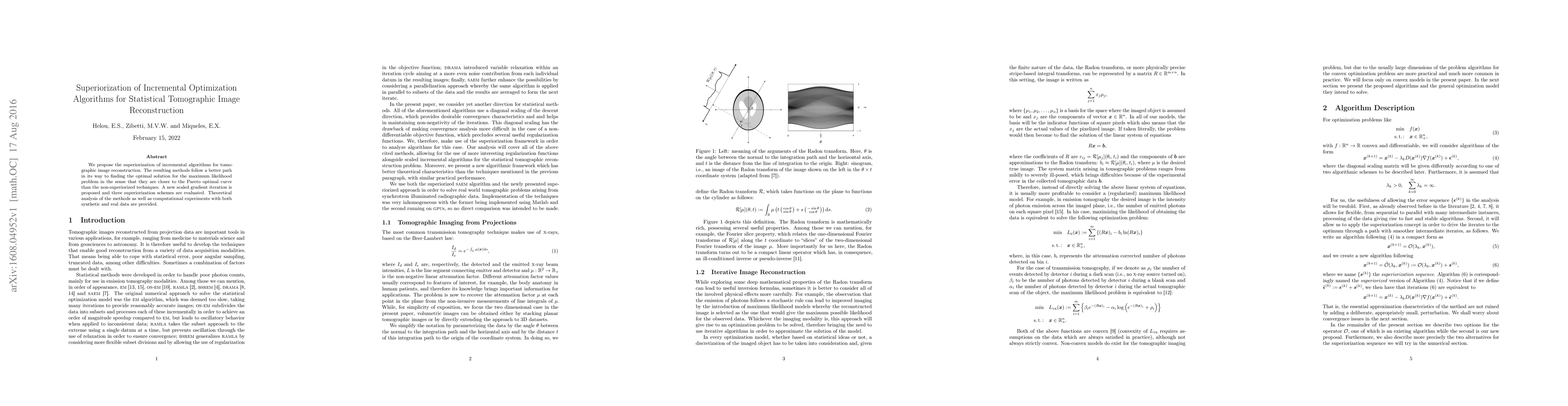 This paper proposes superiorization techniques to enhance incremental algorithms for tomographic image reconstruction, achieving closer results to the Pareto optimal curve compared to non-superiorized methods. The study includes theoretical analysis and computational experiments on both synthetic and real data.
