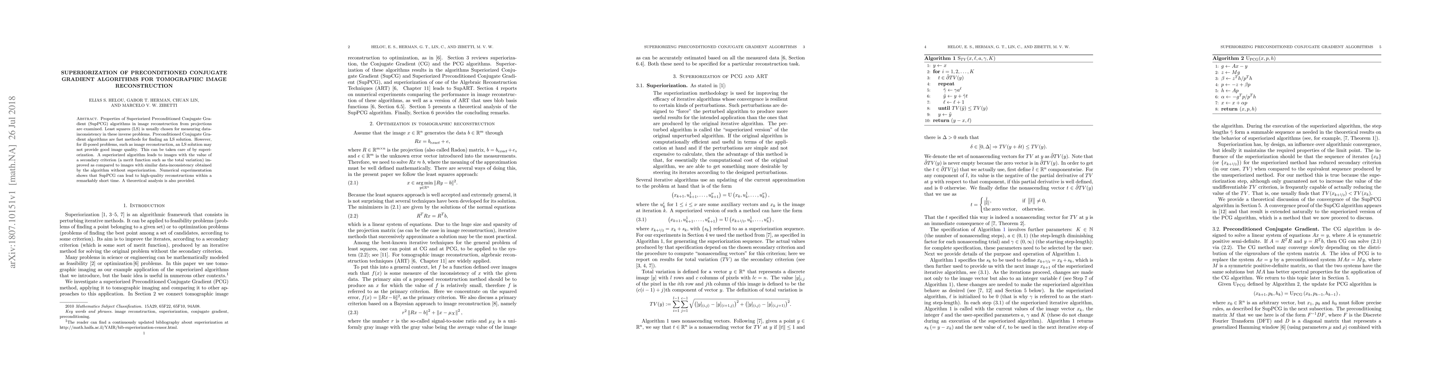 This paper examines Superiorized Preconditioned Conjugate Gradient (SupPCG) algorithms for tomographic image reconstruction, showing they can improve image quality over traditional methods. Numerical results demonstrate SupPCG achieves high-quality reconstructions quickly, supported by a theoretical analysis.