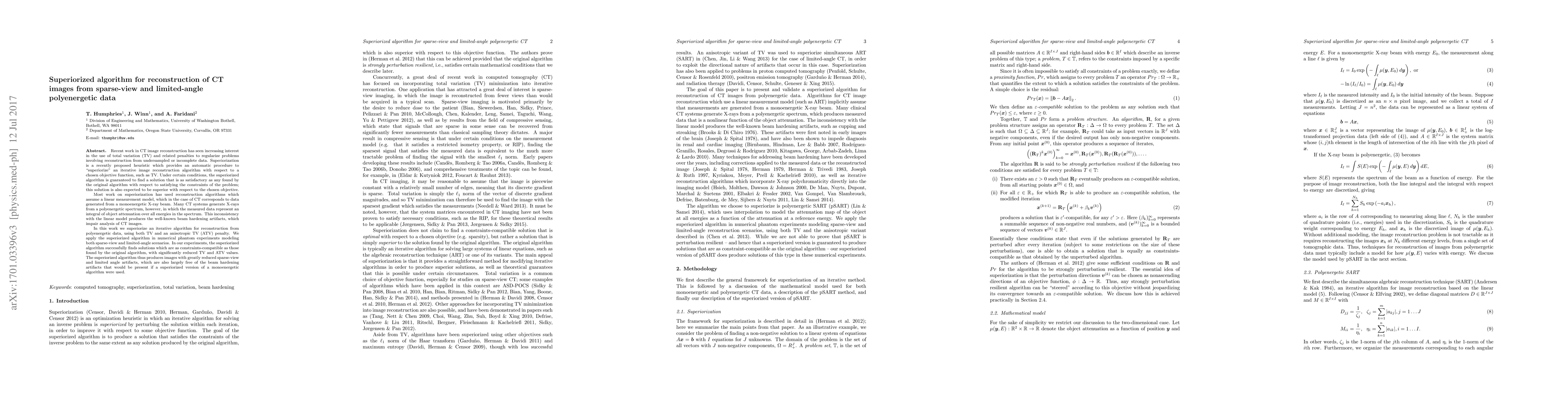 This paper proposes a superiorized algorithm to reconstruct CT images from sparse-view and limited-angle polyenergetic data, addressing beam hardening artifacts. The superiorized algorithm, incorporating total variation and anisotropic TV penalties, outperforms the original algorithm in reducing artifacts and improving image quality.